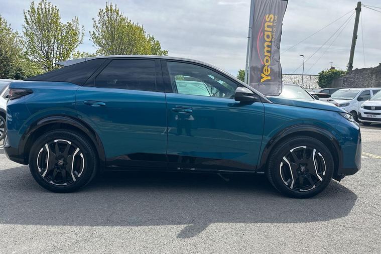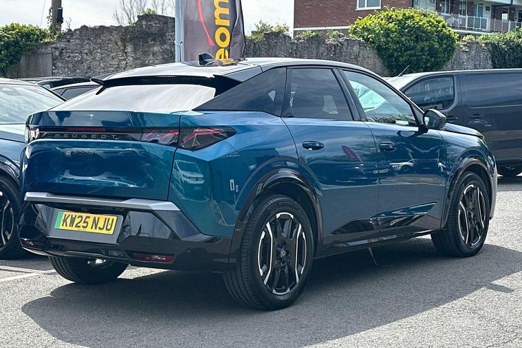 *FREE HOME CHARGER BY OCTPUS ENERGY AND £1000 DEPOSIT CONTRIBUTION WHEN FINANCED WITH STELLANTIS FINANCIAL SERVICES AT 9.5% APR. PCP OR HP QUALIFY.*This 2025 Peugeot E-3008 GT is a superb example, having had only one owner from new. As a fully electric vehicle, it offers a smooth and quiet driving experience, powered by an 81 kWh battery that provides a maximum range of 325 miles. Convenience is key with this GT trim, featuring automatic headlights, rear parking sensors for easier manoeuvring, and adaptive cruise control with a stop and go function for relaxed journeys. You'll also appreciate the integrated smartphone wireless charger and the PEUGEOT Open and Go system, which allows for keyless entry.The impressive 325 mile maximum range at new highlights the E-3008's capability for longer trips, setting it apart from many other electric vehicles. Furthermore, its large boot space ensures you have ample room for luggage or shopping. When it comes to charging, you can achieve a full charge at home using a 7kW charger in approximately 8 hours, perfect for overnight top ups. For quicker power boosts, the fastest public charging time from empty to 80% is a swift 40 minutes, demonstrating its practicality for life on the go..