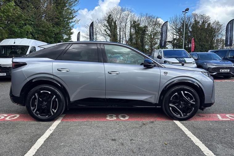*FREE HOME CHARGER BY OCTPUS ENERGY AND £1000 DEPOSIT CONTRIBUTION WHEN FINANCED WITH STELLANTIS FINANCIAL SERVICES AT 9.5% APR. PCP OR HP QUALIFY.*This 2025 Peugeot E-3008 GT is a pristine example, having had only one owner since new. As a fully electric vehicle, it offers a sophisticated driving experience with its GT trim and advanced PEUGEOT i-Connect system, which seamlessly integrates Android Auto and Apple CarPlay. Comfort is assured with automatic dual zone climate control and a quick launch cabin heating and cooling function, while the convenience of a smartphone wireless charger and the PEUGEOT Open and Go system with keyless entry further enhance its appeal.The E-3008 GT boasts an impressive battery total capacity of 81 kWh, providing a maximum range of 325 miles on a full charge, a key advantage over many other electric vehicles. This exceptional range means fewer stops and more miles of enjoyable driving. Charging is also convenient, with a full charge achievable at home in approximately 8 hours using a 7kW charger, and a rapid charge to 80% taking just 40 minutes at a public charging station. Furthermore, this model offers generous boot space, making it a practical choice for families and everyday life..