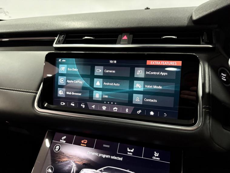This Range Rover Velar has been serviced at 19-41-61k miles and has MOT until April 2027, finished in Indus silver with black leather interior, supplied with 2 keys. The R Dynamic HSE trim level ensures a premium experience, and with a towing weight of 2500 kg, it is well equipped for your towing needs. Features include a panoramic glass roof, heated and cooled front seats, electric front seats with memory function, detachable tow bar and 21 inch alloy wheels.Experience impressive performance with a 0-60mph acceleration time of just 7.0 seconds, demonstrating its capability compared to other vehicles in its class. The large boot space provides ample room for luggage or shopping. This Range Rover Velar is also equipped with advanced driver aids, including Adaptive Cruise Control with Queue Assist and Intelligent Emergency Braking, along with Traction Control System and Electronic Stability Program for enhanced safety and control. The Leather Steering Wheel with Chrome Bezel adds a touch of refinement, while the Open Rear Differential further contributes to its dynamic performance..