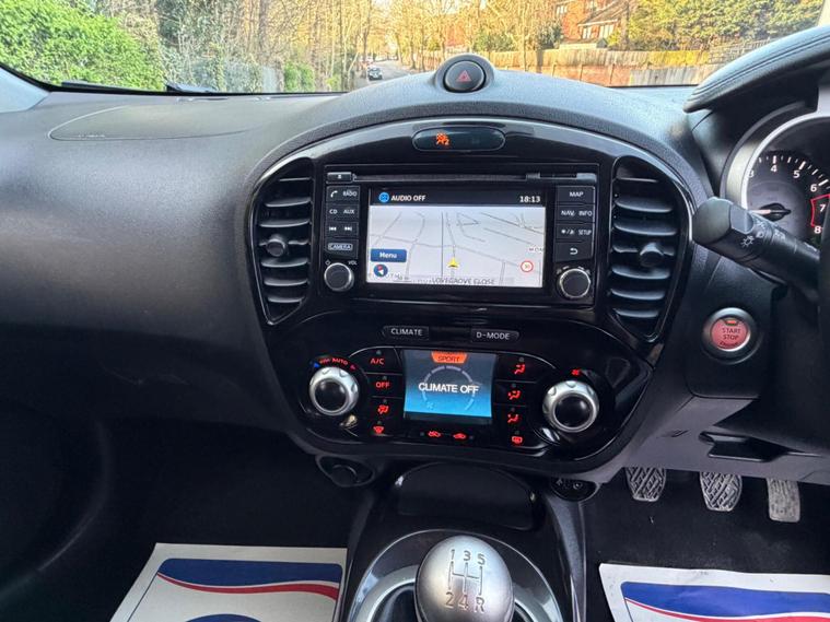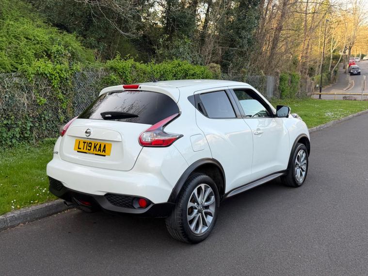 ULEZ ** IMMACULATE INSIDE OUT ** FULLY VALETED ** NO ADMIN FEE ** GENUINE LOW MILES ** FULL SERVICE HISTORY WITH NEW SERVICE JUST DONE 02030183648 ** MOT 23-03-2027 ** JUST 1 PREVIOUS OWNERS FROM NEW ** SPARE KEY ** RUNS PERFECT ** SAT NAV ** MEDIA **BLUETOOTH ** PARKING SENSORS ** CRUISE CONTROL ** FREE 12 MONTHS AA BREAKDOWN COVER ** FREE 06 MONTHS PARTS AND LABOUR NATIONWIDE WARRANTY **This 2019 Nissan Juke Tekna offers exceptional peace of mind with its MOT valid until March 2027 and a full service history, including a recent service in April 2026. This Euro 6 compliant 1.6 litre petrol model boasts a clear vehicle history check and comes with a 6 month warranty. With only 40, 000 miles on the clock, this Juke is remarkably low mileage for its age.The Tekna trim level is well equipped, featuring a BOSE Personal Sound System for an immersive audio experience and Bluetooth integration for seamless phone connectivity. Parking is made effortless with the 360 Degree Around View Monitor and a colour reversing camera. Keyless entry and a push button start are also included for added convenience. This Nissan Juke also sits in a low insurance group, making it an economical choice compared to many other vehicles in its class..
