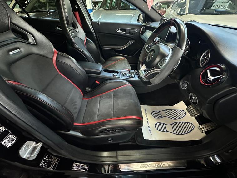 This 2016 Mercedes Benz GLA45 AMG presents a compelling proposition with its remarkably low mileage of just 68, 500 miles for its age, coupled with a clear vehicle history check. This premium AMG variant boasts a powerful 2.0 litre petrol engine and four wheel drive, ensuring dynamic performance while adhering to Euro 6 emissions standards. You'll appreciate the convenience of Keyless Go for effortless entry and starting, alongside front and rear parking sensors with parking assistance to make manoeuvring simple. Inside, the cabin is enhanced by a premium Harman Kardon Logic 7 surround sound system, and the front seats offer a memory function for personalised comfort.The impressive acceleration of this GLA45 AMG, achieving 0-62mph in a swift 4.4 seconds, truly sets it apart from other vehicles in its class. This performance is complemented by a generously sized boot, offering ample space for your luggage or shopping needs. These highlights demonstrate the exceptional blend of sportiness, luxury, and practicality that this Mercedes Benz GLA45 AMG provides..