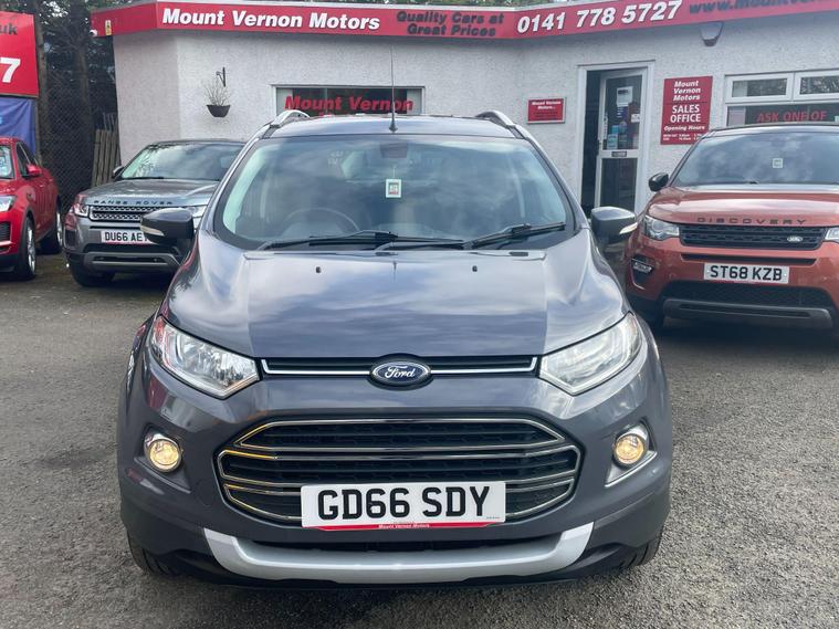 This 2016 Ford EcoSport T Titanium presents an exceptional opportunity with its remarkably low mileage of just 12, 500 miles, a significant advantage for its age. This Euro 6 compliant 1.0L petrol model boasts a clear vehicle history check and will come with a full 12 months MOT for your peace of mind. Key features include automatic headlights, a KeyFree system for effortless entry and starting, stylish 17 inch alloy wheels, and a leather steering wheel complete with remote audio controls for convenience on the go. Electronic Brakeforce Distribution (EBD) also contributes to its safe and reliable performance.The Ford EcoSport T Titanium offers impressive running costs, highlighted by its excellent fuel economy of 52 mpg, making it an economical choice for your daily journeys. Furthermore, its low CO2 emissions and low insurance group rating indicate that this vehicle is a more cost effective option compared to many others in its class. This combination of low mileage, excellent condition, and desirable features makes this EcoSport a compelling proposition..