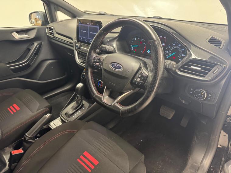 This 2023 Ford Fiesta ST-Line is a superb example, having had only one owner since new. This Euro 6 compliant hatchback features a responsive 1.0L Petrol Hybrid engine, offering an engaging driving experience. Inside, you'll find a comfortable cabin with a leather trimmed gearshift knob and manual air conditioning to keep you cool. For convenience and safety, it includes rear parking distance sensors and LED headlights with integrated daytime running lights and fog lights. The Ford SYNC2.5 system seamlessly integrates with your smartphone via Android Auto and Apple CarPlay, keeping you connected on the go.The performance of this Fiesta ST-Line is noteworthy, achieving 0-62mph in just 9.6 seconds. This acceleration figure demonstrates its agility and responsiveness, making it a more dynamic choice compared to other vehicles in its class. The combination of its efficient hybrid technology, sporty ST Line trim, and comprehensive feature set makes this a well rounded and appealing hatchback.Shiraz.