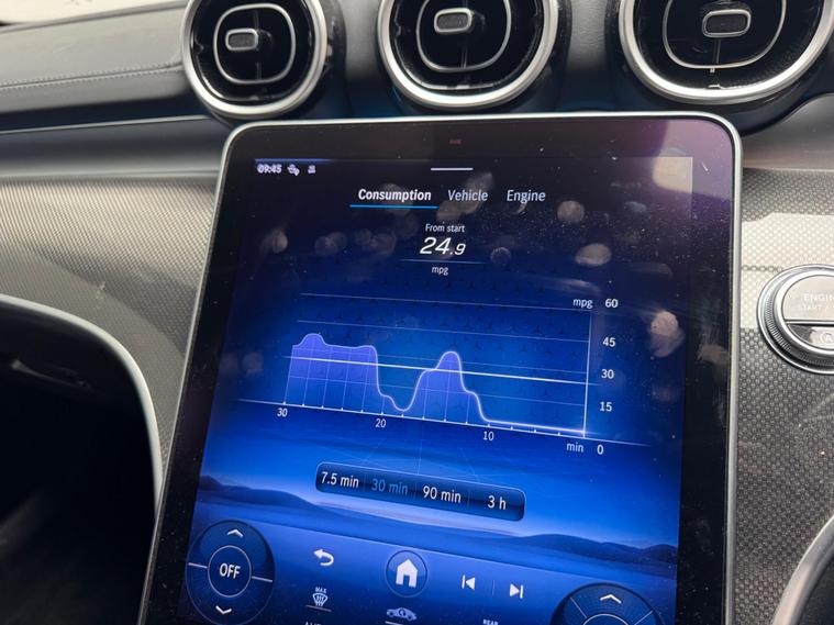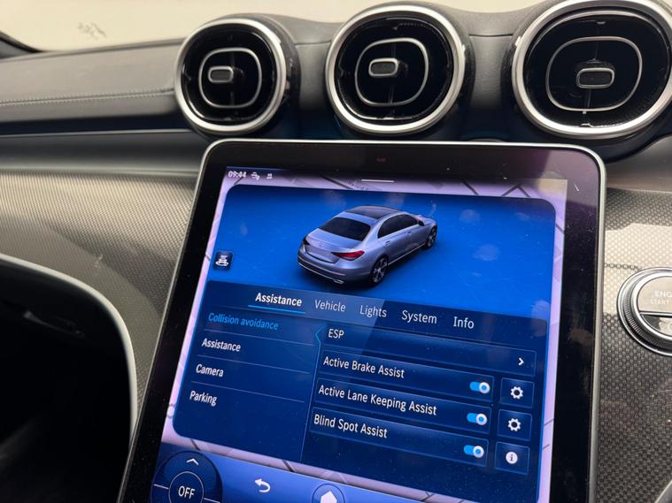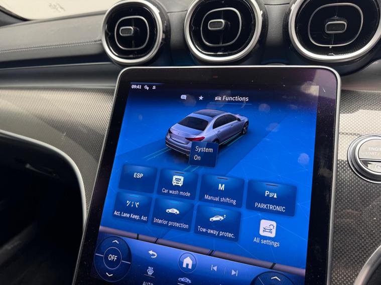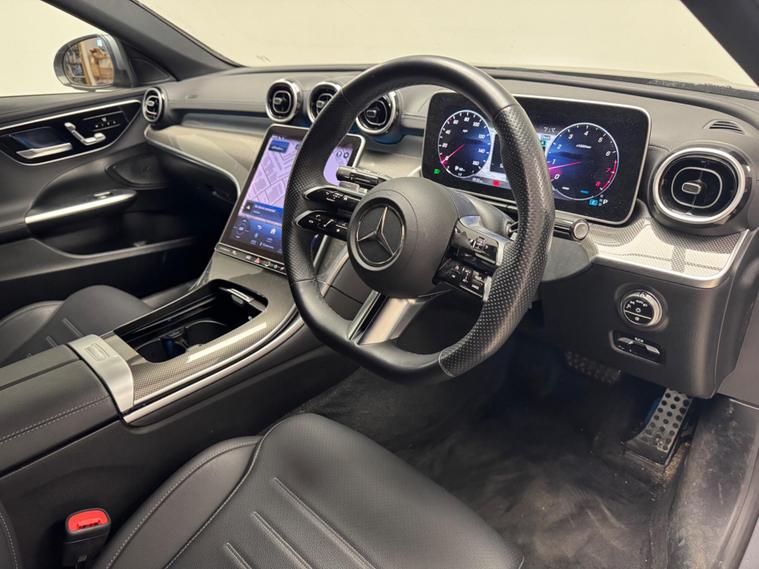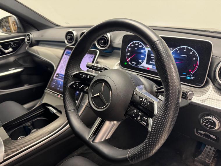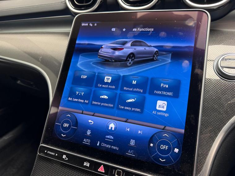 This 2023 Mercedes Benz C Class C300h AMG Line (Premium) presents an exceptional opportunity with its remarkably low mileage of just 8842 miles, a testament to its careful single ownership. This Euro 6 compliant model boasts a powerful 2.0L Petrol Hybrid engine, offering an impressive 0-62mph acceleration in a mere 6.0 seconds. The AMG Line trim enhances its sporty appeal, while the Premium designation brings a suite of advanced features. These include THERMATIC automatic climate control for two zones, ensuring comfort for all occupants, and Blind Spot Assist for added safety.Further enhancing the driving experience are the sophisticated LED Digital Headlamps, providing superior illumination. Navigating tight spaces is made effortless with the Parking Package, complete with a 360-degree camera for complete visibility. The Memory Package for the seats allows for personalised driving positions to be saved, highlighting the thoughtful design and technology integrated into this vehicle, setting it apart from others in its class..
