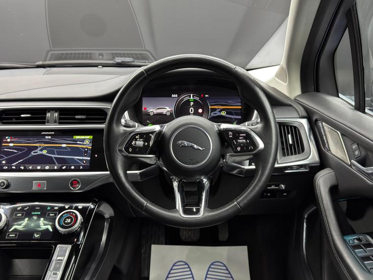 Here at Motor Gurus we are delighted to offer a Jaguar I-PACE 400 90kWh HSE Auto 4WD. This vehicle is in very good condition when taking into consideration the vehicle's age and mileage. This specific vehicle is finished in a GLOSS BLACK and is matched with a BLACK LEATHER interior. This vehicle comes included with: FRONT & REAR PARKING SENSORS, 360° VIEW PARKING CAMERAS, PRIVACY GLASS, FIXED GLASS ROOF, ELECTRIC TAILGATE, FRONT HEATED/VENTED/ELECTRIC/MEMORY SEATS, REAR HEATED SEATS, MERIDIAN SURROUND SOUND SYSTEM, ADAPTIVE CRUISE CONTROL, AUTOMATIC HEADLIGHTS, DIGITAL COCKPIT, TWIN CUPHOLDERS, DRIVING MODES, AUTO PARK, CLIMATE CONTROL, HEATED STEERING WHEEL, SAT NAVIGATION, DAB RADIO, BLUETOOTH AUDIO, TELEPHONE CONNECTIVITY, APPLE CARPLAY, COLLISION AVOIDANCE, LANE KEEPING ASSIST, SPEED LIMIT ASSIST, BLIND SPOT MONITORING, TYRE PRESSURE MONITORING AND MUCH MORE! Our Jaguar I-PACE 400 90kWh HSE Auto 4WD has come to us with SERVICE HISTORY and is a 1 FORMER KEEPER (2 owners) FROM NEW! We will also provide a 12 MONTH MOT and a FRESH OIL SERVICE before it leaves our premises (OTR)..