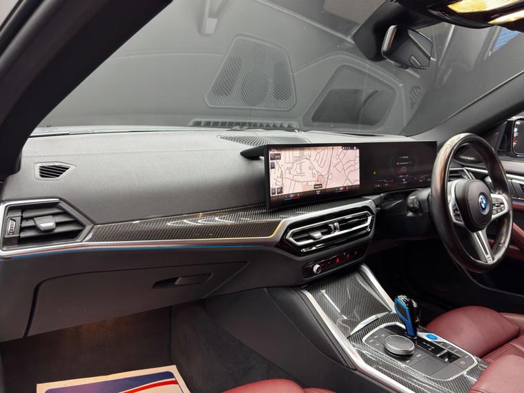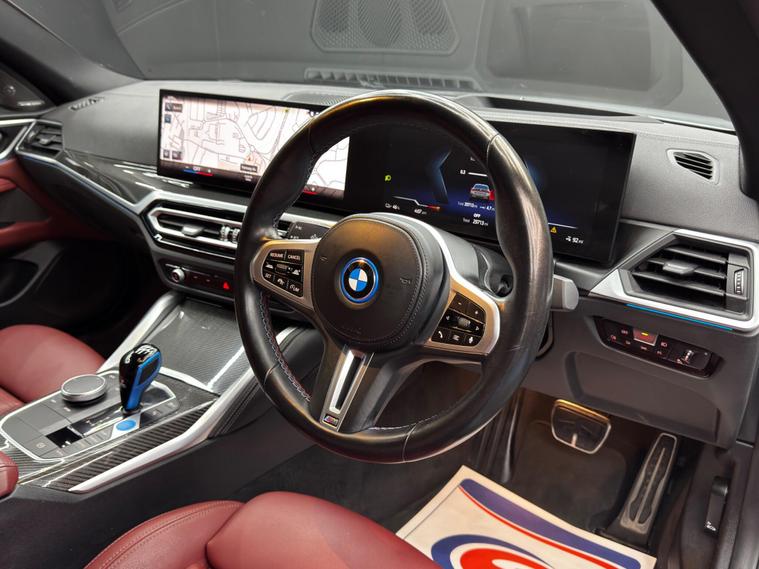 Here at Motor Gurus we are delighted to offer a BMW i4 M50 83.9kWh Gran Coupe Auto 4WD. This vehicle is in very good condition when taking into consideration the vehicle's age and mileage. This specific vehicle is finished in a GLOSS GREY and is contrasted by a RED LEATHER interior. This vehicle comes included with: FRONT & REAR PARKING SENSORS, REAR PARKING CAMERA, PRIVACY GLASS, ELECTRIC TAILGATE, FRONT HEATED/ELECTRIC SEATS, DRIVER MEMORY SEAT, HARMAN/KARDON SOUND SYSTEM, ADAPTIVE CRUISE CONTROL, AUTOMATIC HEADLIGHTS, DIGITAL COCKPIT, HEADS UP DISPLAY, AUTO HOLD, TWIN CUPHOLDERS, DRIVING MODES, CLIMATE CONTROL, SAT NAVIGATION, DAB RADIO, BLUETOOTH AUDIO, TELEPHONE CONNECTIVITY, APPLE CARPLAY, WIRELESS PHONE CHARGING, AMBIENT LIGHTING, COLLISION AVOIDANCE, LANE KEEPING ASSIST, TYRE PRESSURE MONITORING AND MUCH MORE! Our BMW i4 M50 83.9kWh Gran Coupe Auto 4WD has come to us with SERVICE HISTORY, 2 KEYS and is a 1 FORMER KEEPER (2 owners) FROM NEW! We will also provide a 12 MONTH MOT and a FRESH OIL SERVICE before it leaves our premises (OTR)..