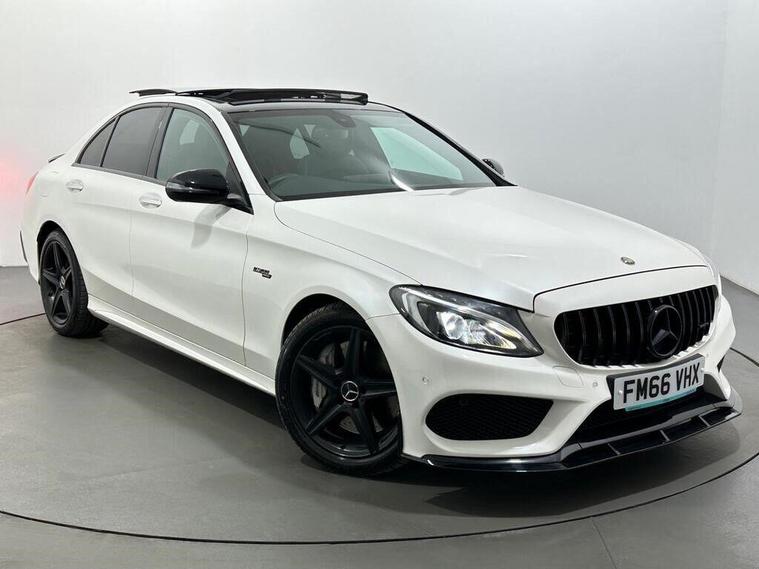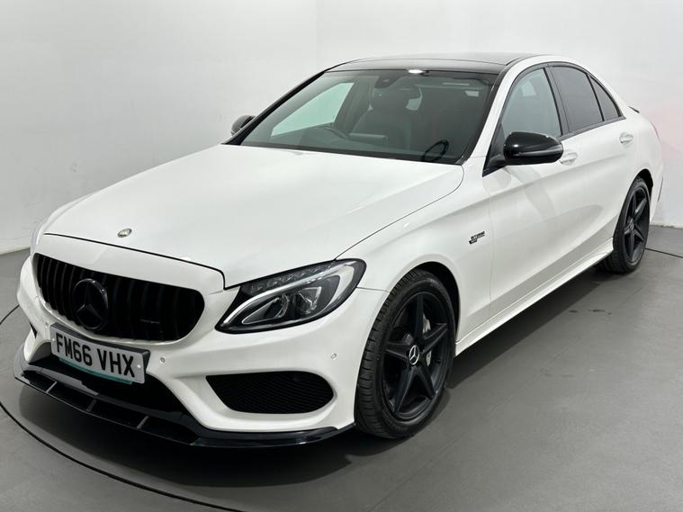 Our Mercedes-Benz C-Class AMG C43 is finished in Designo Diamond White Metallic and comes with optional extras worth of £4, 180.PANORAMIC GLASS ROOF | REAR VIEW CAMERA | AUTOMATIC ALL LED HEADLIGHTS | FRONT & REAR PARKING SENSORS | 18'' ALLOY WHEELS | BURMESTER SOUND SYSTEM | ALCANTARA & LEATHER INTERIOR WITH FRONT HEATED & ELECTRIC SEATS | BLUETOOTH WITH AUDIO STREAMING | TWO-ZONE CLIMATE CONTROL | ELECTRIC, HEATED & FOLDING SIDE-VIEW MIRRORS | ELECTRIC TAILGATE | CRUISE CONTROL | DAB TUNER | MULTIFUNCTIONAL STEERING WHEEL WITH PADDLE-SHIFTERS | RAIN SENSORS | USB CONNECTIVITY | FOLDABLE REAR SEATS.This vehicle's specification has been provided by the leading data supplier CAP HPI, which provides vehicle data across the whole of the industry. However, we cannot guarantee the accuracy of any data provided by 3rd Party sources as the specification can sometimes vary. Please check with a salesperson and ensure you physically inspect the vehicle in respect of any items which may affect your decision to purchase. FOR FULL SPEC PLEASE CHECK BELOW.