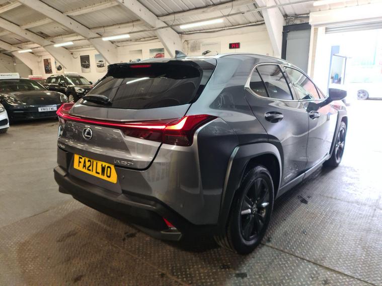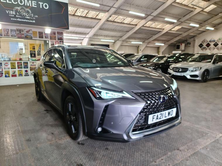 This 2021 Lexus UX 250h boasts a clear vehicle history, offering you peace of mind. This stylish compact SUV features a 2.0 litre petrol hybrid engine, meeting Euro 6 emissions standards. Inside, you'll find a dual zone climate control air conditioning system for your comfort, along with Bluetooth mobile phone connectivity, and seamless integration with Apple CarPlay and Android Auto. The Lexus Safety System Plus, including adaptive cruise control, and a reversing camera with back guide lines, are also included for your convenience and safety.Experience impressive efficiency with a highlight fuel economy of 53 miles per gallon. This Lexus UX 250h also benefits from a low insurance group and low CO2 emissions, making it an economical choice. Its acceleration from 0 to 62 miles per hour in just 8.5 seconds demonstrates its responsive performance. These highlights collectively indicate that this Lexus UX 250h offers a superior driving experience compared to similar vehicles..
