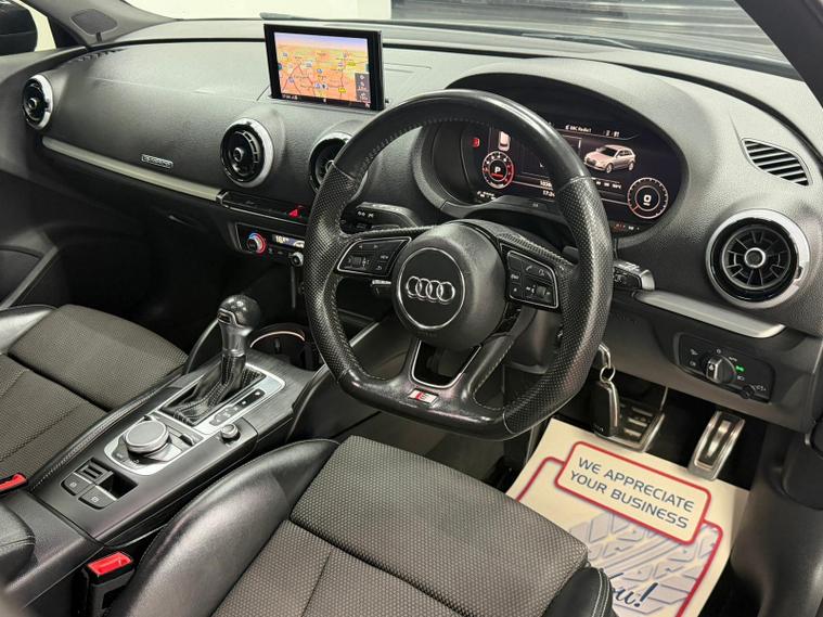 This 2018 Audi A3 TFSI Black Edition offers a compelling blend of performance and sophisticated design. Powered by a 2.0 litre petrol engine and featuring a four wheel drive drivetrain, this Euro 6 compliant model ensures a responsive and capable driving experience. The Black Edition trim enhances its appeal with striking LED headlights and rear lights, complete with dynamic rear indicators, and an auto dimming rear view mirror that automatically activates the headlights when light or rain is detected. For added convenience, it includes rear parking sensors and a Bluetooth interface for seamless connectivity, alongside dual zone electronic climate control to keep all occupants comfortable.The Audi A3 TFSI Black Edition stands out with its impressive acceleration, achieving 0 to 62 miles per hour in just 6.2 seconds, demonstrating its dynamic performance capabilities. This quick acceleration indicates a superior driving experience compared to many other vehicles in its class. Furthermore, the generous boot space provides ample room for luggage or shopping, making it a practical choice for everyday use and longer journeys alike..