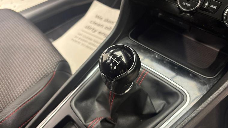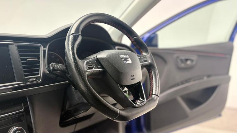 - Steering Wheel - Flat-Bottomed Perforated Leather with Red Stitching and FR Logo