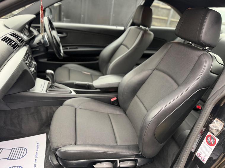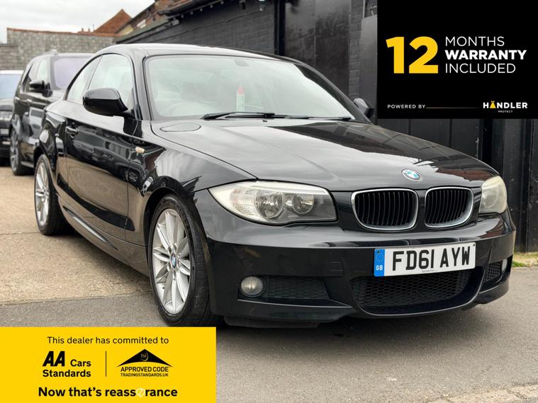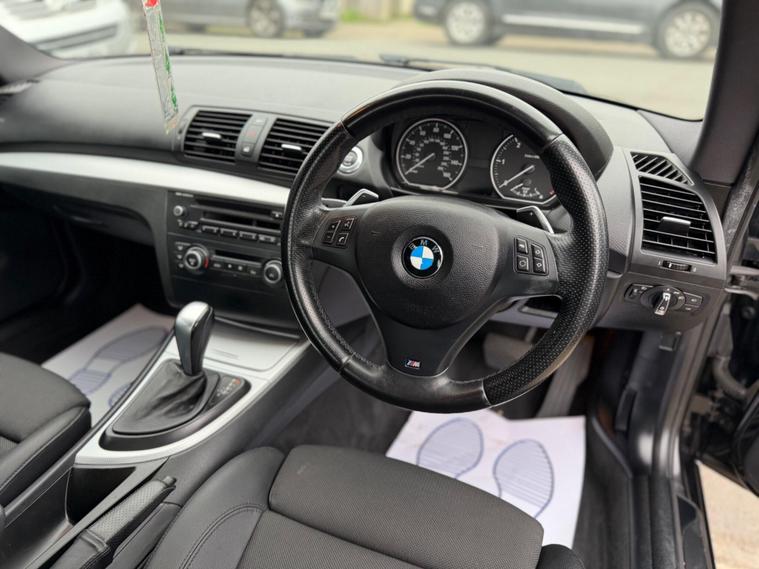*****RARE BMW M SPORT COUPE*****177 BHP*****FINISHIED IN BLACK SAPHIRE METALLIC WITH BLACK LEATHER INTERIOR 6 SPEED AUTOMATIC TRANSMISSION FULL M SPORT PACKAGE - FACTORY SPECIFICATION SHEET AVAIBLE IN PAPERWORKBMW M SPORT 207M 17'' ALLOY WHEELS HAS JUST BEEN FULLY SERVICED AND MOT TESTED COSTING ( £1322.96 ) INCLUDES NEW REAR SHOCK ABSORBERS, NEW REAR BRAKES, NEW NSF SHOCK ABSORBER - INVOICE TO PROVE A WELL LOVED AND CHERISHED BMW ~ A NICE CLEAN GENUINE EXAMPLE DRIVES REALLY WELL WITH A SMOOTH ENGINE AND GEARBOX MUST BE SEEN ~ ANY INSPECTION WELCOME Boasting an impressively low mileage for its age, this 2011 BMW 1 Series 120d M Sport presents a compelling proposition. With only two previous owners and a clear vehicle history check, this M Sport trim model is powered by a capable 2.0L diesel engine, offering brisk acceleration from 0-60mph in just 7.0 seconds. It comes equipped with rear Park Distance Control for easier manoeuvring and dual zone automatic air conditioning, ensuring a comfortable cabin environment for all occupants.This BMW 1 Series stands out with its low insurance group, making it an economical choice for many drivers. The partial service history, with the last service recorded at 102, 312 miles on 07 April 2026, combined with its low mileage for a 2011 vehicle, indicates careful ownership. A 12 month warranty is also included, providing added peace of mind for the new owner..