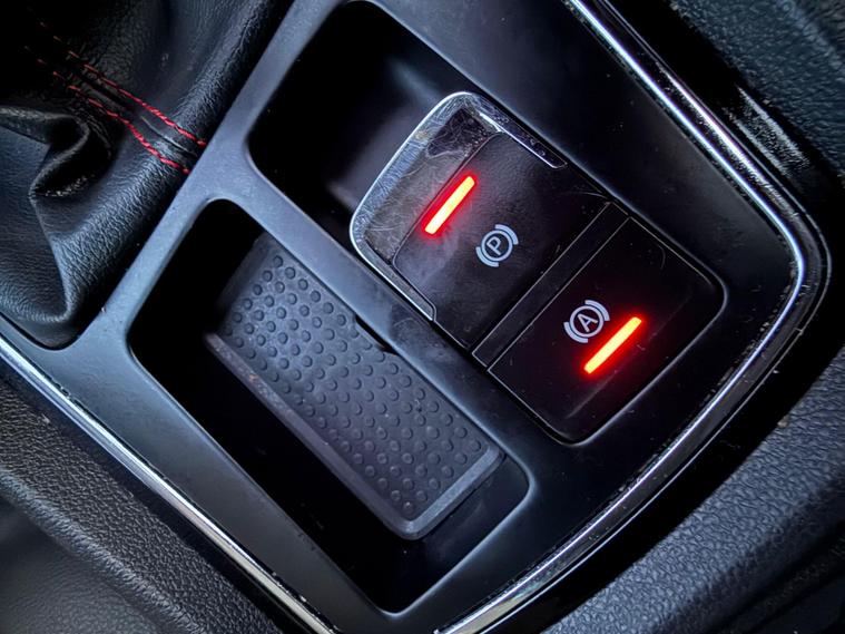 - Steering Wheel - Flat-Bottomed Perforated Leather with Red Stitching and FR Logo