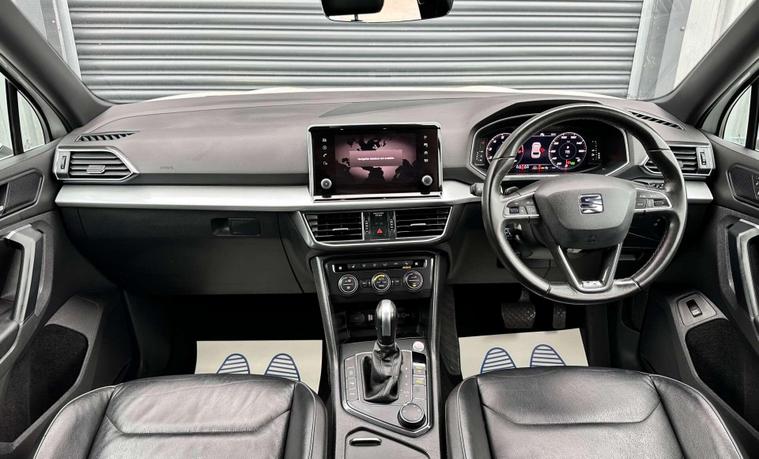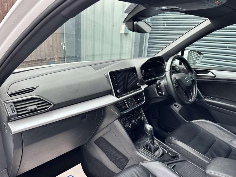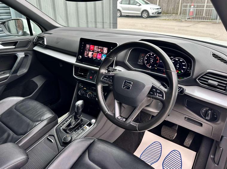 SEAT Tarraco 1.5 TSI EVO XCELLENCE SUV 5dr Petrol DSG Euro 6 (s/s) (150 ps) finished in oryx white pearl with a full black leather interior. 19'' exclusive machined alloy wheels, DAB radio, Apple CarPlay, & Android auto, Electric closing tailgate, 360 parking sensors, Full link smart phone integration, Digital cockpit with 10.25inch screen, heated seats, Navigation system, Bluetooth, adaptive cruise control with speed limiter, Rear view camera, rear parking sensors, Tiredness recognition, Dark tinted rear windows, Hidden exhaust pipe, Chrome roof rails, Front halogen fog lights with cornering function, Active front head restraints, electric front & rear windows, Rear picnic tables, Electric adjustable folding and heated door mirrors, automatic headlights, LED DRL's, rain sensing wipers, perforated leather multifunction steering wheel with contrast stitching, auto dimming rear view mirror, chrome window trim, Here at Saracen Motor Group we have been awarded AA Platinum dealership recognition along with being nominated for best customer service by Autotrader for 2021, 2022, 2023, 2024 & 2025. We are a 5-star dealership with over 600 5-star reviews across all internet platforms including Autotrader and have been regarded as one of the best dealerships to buy from in the UK.Our preparation team inspects each vehicle to the highest level possible for its age and mileage. You can rest assured your next car has been cared for to the highest standard. Service history, V5 and the HPI certificate will all be present on viewing and collection. With our location based in Battlesbridge, Essex you can enjoy a haggle-free buying experience where you can drive away the same day if prior arranged, additional fees apply please see our website for details..