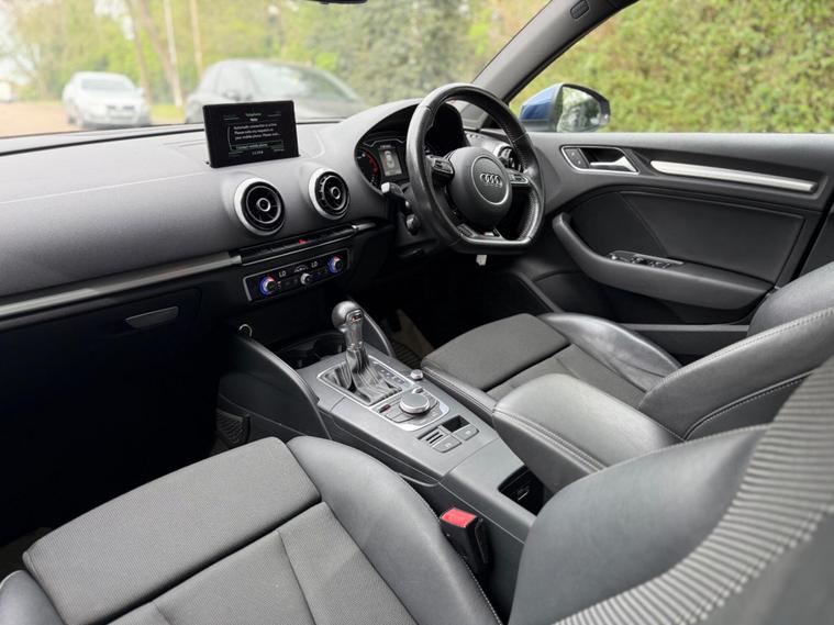 fsh 6 months warranty finance arranged AA aproved garage new MOT 1 years AA break down included This Audi A3 TFSI S line from 2015 boasts an impressive provenance, having had only two owners since new. This well maintained example features a 1.4 litre petrol engine and is compliant with Euro 6 emissions standards. Inside, you'll find the comfort of Dual Zone Electronic Climate Control and the convenience of Bluetooth Audio Streaming and Mobile Telephone Preparation. Driving is enhanced by Bi Xenon Plus headlights, providing excellent visibility.This Audi A3 TFSI S line offers excellent running costs, with a fuel economy of up to 59 miles per gallon, which is a significant advantage over many other vehicles in its class. Its low CO2 emissions also contribute to its appeal, making it a more environmentally conscious choice. The S line trim level ensures a sporty and stylish finish, combining practicality with a premium feel..