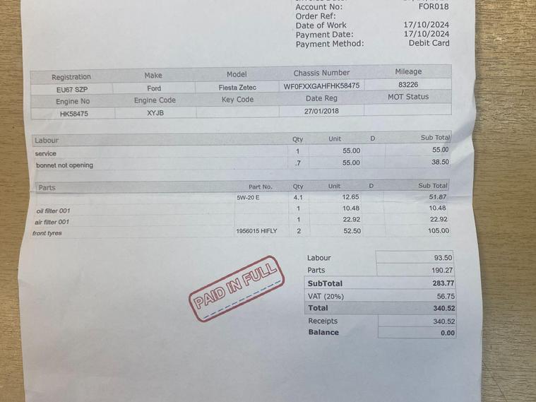 This FORD FIESTA features popular small hatchback with economical running costs, Finished in attractive Black colourway, Only 1 owner, 2 keys, Service history, January 2027 Mot, Road tax at £200 pounds per year, Spec including Alloys, Touch screen Radio with Apple Car Playand Android Auto, Bluetooth/Sat Nav /USB/Aux, Air con, Heated front and rear screens, E/windows, E/Mirrors, Remote c/locking, Cruise Control, Multi airbags, HPI clear with certificate, No admin fees to pay, All Included in the price is a 12 month warranty with the first month given as unconditional, and then a further 11 months covering the most major parts, driveaway insurance available (Ts & Cs apply).