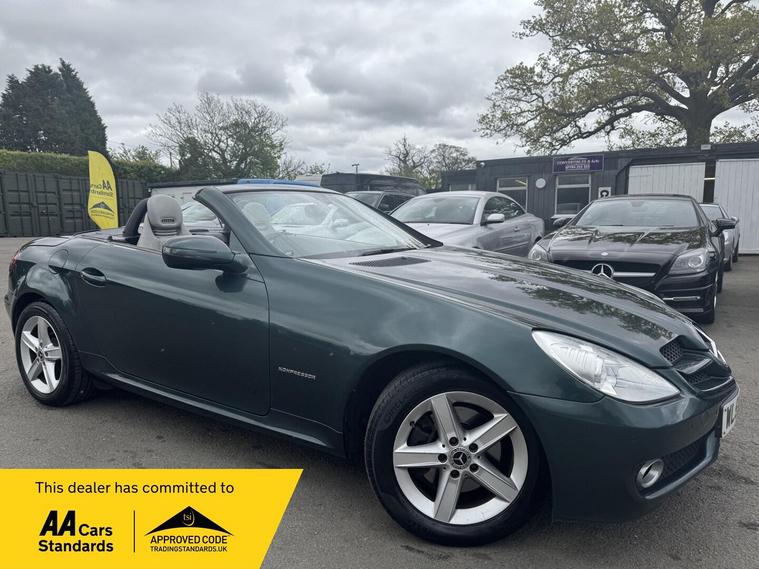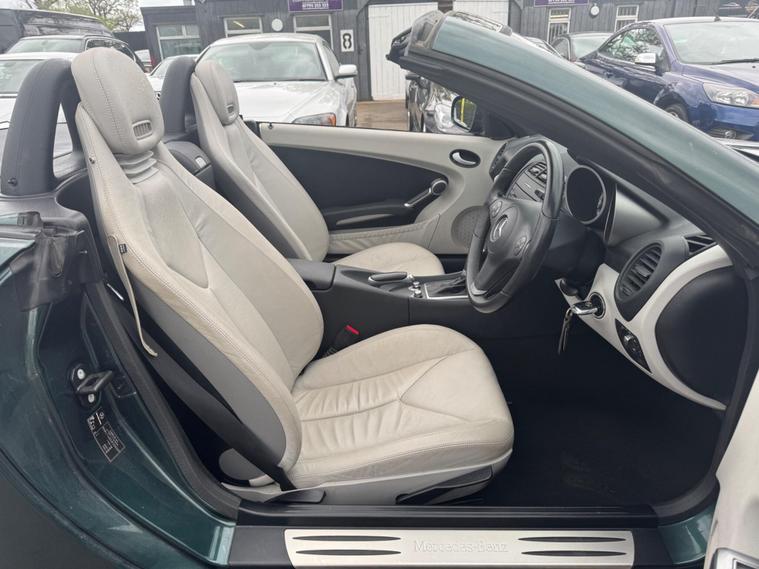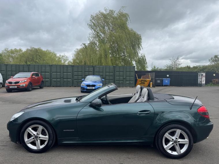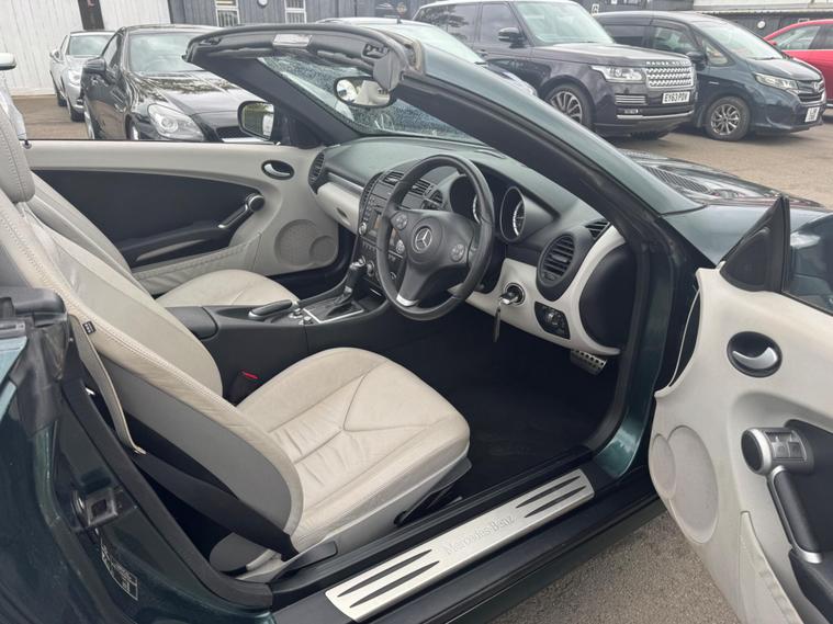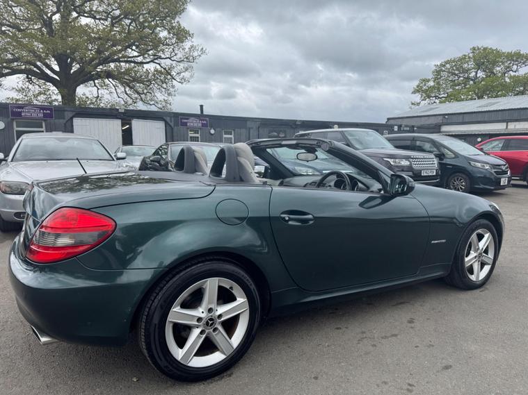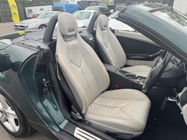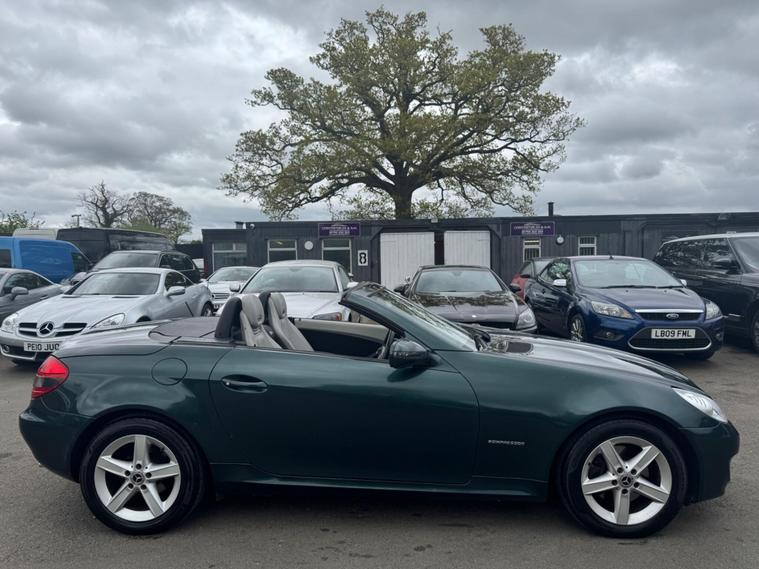 I HAVE JUST COLLECTED THE CAR AN HOUR AGO AND JUST TAKEN A FEW PHOTOS IN MY LOCAL SCOUT CLUB HUT CAR PARK, A BETTER SET PHOTOS IN THE NEXT DAY OR SO WHEN IT HAS HAD A PROFESSIONAL DETAILED VALET. THIS Mercedes-Benz SLK 1.8 SLK200K AUTOMATIC Tiptronic Euro 4 2dr LOOKS AMAZING IN THE SUPERB COLOUR BROOKLANDS RACING GREEN METALLIC CONTRASTING ALPACA PALE GREY LEATHER HEATED SEATS WITH AIR SCARF, INTERIOR AND ALUMINIUM TRIM TO THE DASH AND DOOR CARDS YES VERY SMART. THE LAST OWNER HAS LOVED AND CHERISHED THE CABRIOLET FOR 7 YEARS. THERE IS A PART SERVICE HISTORY 8 OF AND WE WILL SERVICE IT AS SOON AS IT ARRIVE. THE ROADSTER HAS A POWER CONVERTIBLE ROOF, TELEPHONE BLUETOOTH TELEPHONE CONNECTION, DUAL ZONE CLIMATE CONTROL AIR CONDITIONING , ELECTRIC WINDOWS. STEREO RADIO/CD-PLAYER, REMOTE CONTROL CENTRAL LOCKING SYSTEM, 17 INCH ALLOY WHEELS WITH GOOD TYRES. THERE ARE TWO SETS OF KEYS & ALL THE BOOKS AND MANUALS This 2008 Mercedes Benz SLK200K boasts an impressive history, having been owned by only two previous keepers. This well maintained example features a 1.8 litre petrol engine and comes equipped with desirable features such as Auto Climate Control and a Bluetooth System, ensuring comfort and connectivity on every journey. With a fuel economy of 35 miles per gallon, this SLK200K offers an efficient driving experience. Its low CO2 emissions also highlight its environmental consideration compared to similar vehicles. This combination of low ownership, comfort features, and economical running makes it a compelling choice..