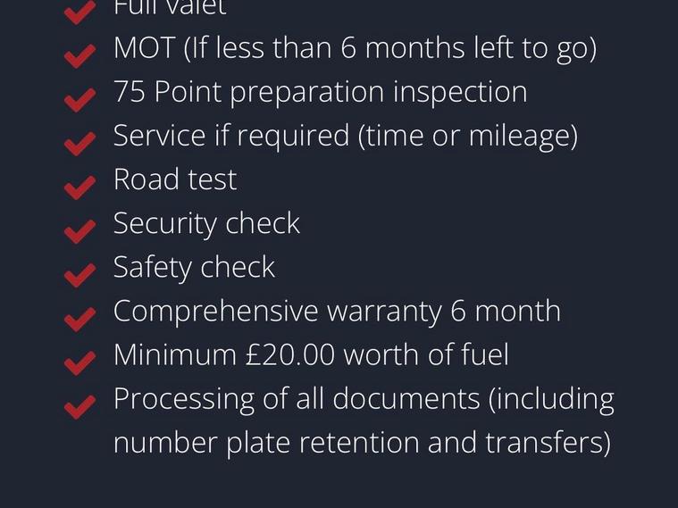 Vehicle Service InformationNumber of services: 8 Additional work carried out:21.05.25 - Replaced read discs & pads, replaced o/s door mirror, Re-gassed aircon, replaced sunroof runners, replaced rear wiper blade________________________________________Service HistoryThe service history for this vehicle has been obtained from one or more of the following sources:• Service book• On-board computer• Service documentation• Information provided by the previous seller✅ 6 months warranty and 6 months breakdown cover included? Video walk-round and images are available via WhatsApp on request, including:• Full service history• Keys• Locking wheel nuts• All paperwork we hold for the vehicle________________________________________WSG Warranty OptionsPlatinum Warranty – Cars under 8 years old and under 80, 000 milesGold Warranty (Hardings Enhanced) – Cars under 12 years old and under 120, 000 milesSilver Warranty – Cars over 12 years old or over 120, 000 milesStandard Warranty Pricing• £400 for a 1-year policy• £800 for a 2-year policy✅ Hardings pays for the 3rd year F.O.C.4x4 Vehicles (100% Price Increase)• £800 for a 1-year policy• £1, 600 for a 2-year policy✅ Hardings pays for the 3rd year F.O.C.Jaguar Land Rover (JLR) Vehicles• £1, 000 for a 1-year policy• £2, 000 for a 2-year policy✅ Hardings pays for the 3rd year F.O.C.________________________________________Hardings Approved Package – £199.00✅ Included in AutoTrader price⚠️ Must be added to Hardings website priceWhat’s included in the Hardings Approved Package:• HPI check• Mileage verification• Vehicle provenance guarantee• Full valet• Fresh MOT (if less than 6 months remaining)• 75-point preparation inspection• Service if due by time and/or mileage• Road test• Security check• Safety check• 6-month comprehensive warranty (claim limit £2, 500)• 6 months breakdown cover (1 claim)• £20.00 worth of fuel• Processing of all documents, including:o Number plate retentiono Free number plateso ⚠️ Transfer fees are not covered.