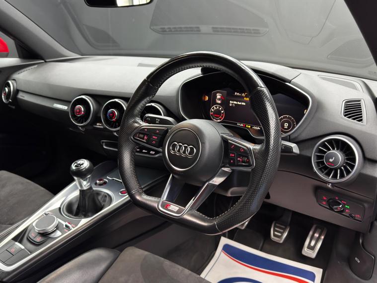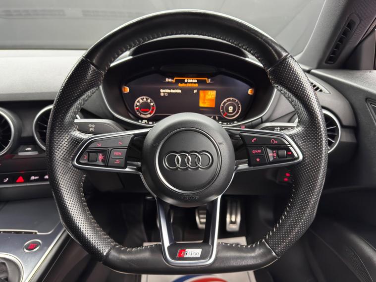 Here at Motor Gurus we are delighted to offer an Audi TT 2.0 TFSI S line. This vehicle is in very good condition when taking into consideration the vehicle's age and mileage. This specific vehicle is finished in a GLOSS RED and is contrasted by a BLACK LEATHER/SUEDE interior. This vehicle comes included with: REAR PARKING SENSORS, HEATED SIDE MIRRORS, FRONT HEATED SEATS, PERFORATED GRIPPED LEATHER STEERING WHEEL, AUTOMATIC HEADLIGHTS, DIGITAL COCKPIT, DRIVING MODES, CUPHOLDER, CLIMATE CONTROL, DAB RADIO, BLUETOOTH AUDIO, TELEPHONE CONNECTIVITY, TYRE PRESSURE MONITORING AND MUCH MORE! We will also provide this vehicle with a 12 MONTH MOT and a FRESH OIL SERVICE before it leaves our premises (OTR)..