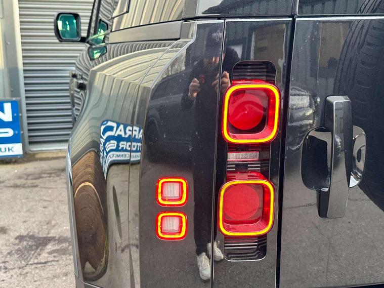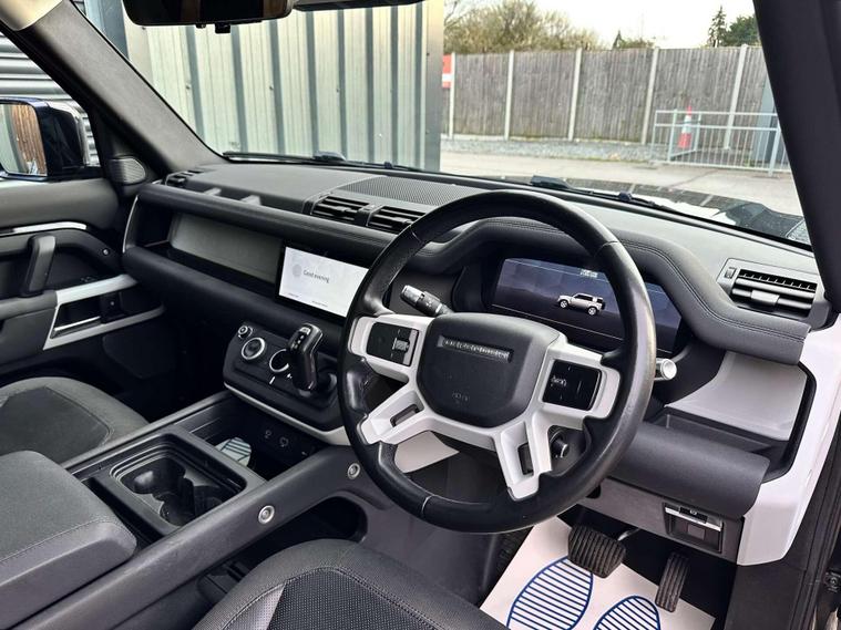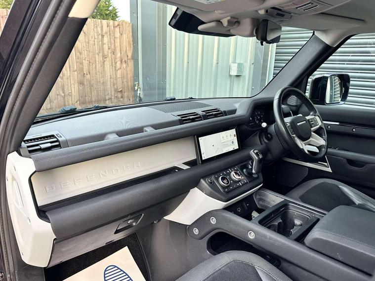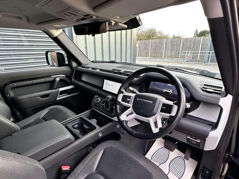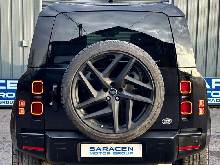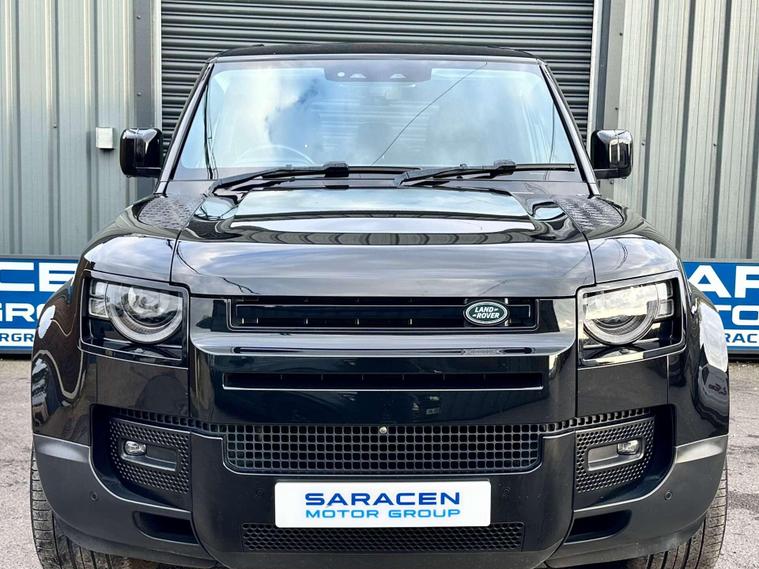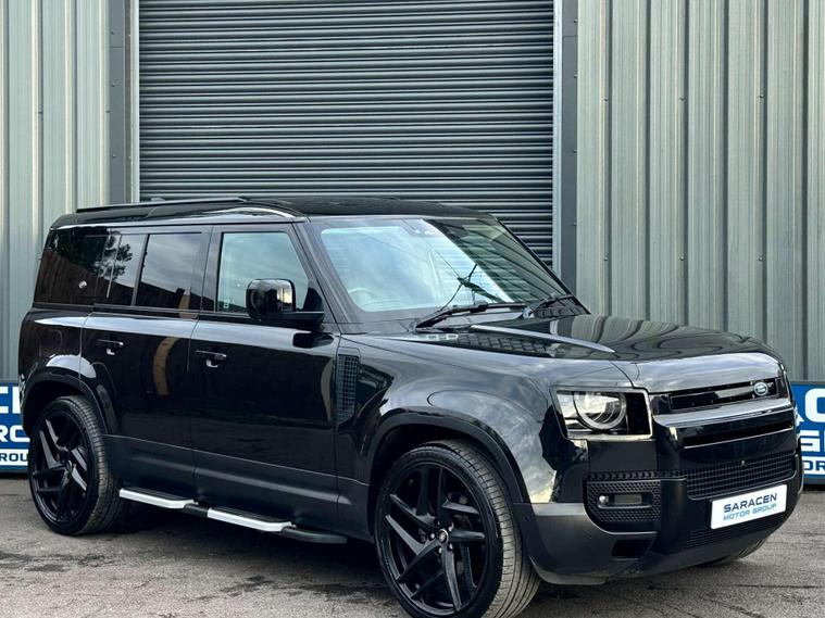 Landrover Defender 110 2.0 SD4 SE SUV 5dr Diesel Auto 4WD Euro 6 Finished in Santorini black metallic paint with a ebony black leather interior.23'' Khan Anthracite finished alloy wheels, 10'' touch screen, Apple CarPlay/ Android Auto, DAB radio, Connected navigation pro, Meridian sound system, 12 way heated electric memory front seats, heated seats, heated steering wheel, Voice command, All terrain system, sliding panoramic glass roof with electric closing sunblind, Side steps, Body coloured door handle’s, Online pack with data plan, 360 degree parking camera, Blind spot assist, 23inch Spare wheel with tailgate fitting, terrain response, Core exterior pack, Signature graphic with interior storage, Premium LED headlights with signature DRL, Two zone climate control, Puddle lights, Driver condition monitor, dynamic volume control, configurable dynamics, cruise control with speed limiter, front and rear parking aid, heated and power folding door mirrors, heated front windscreen, heated rear window, heated washer jets, approach illumination, automatic headlights, LED DRL's, 12-way heated electric driver memory seat, 2-zone climate control, rain sensing windscreen wipers, lane assist, Torque vectoring by braking. Here at Saracen Motor Group we have been awarded AA Platinum Dealership Recognition along with being nominated for best customer service by Autotrader for 2021, 2022, 2023, 2024 & 2025. We are a 5-star dealership with over 600 5-star reviews across all internet platforms including Autotrader and have been regarded as one of the best dealerships to buy from in the UK.Our preparation team inspects each vehicle to the highest level possible for it’s age and mileage. You can rest assured your next car has been cared for to the highest standard. Service history, V5 and the HPI certificate will all be present on viewing and collection. At our site based in Battlesbridge, Essex you can enjoy a haggle-free buying experience where you can drive away the same day if prior arranged. Additional fees apply. Please see our website for details..