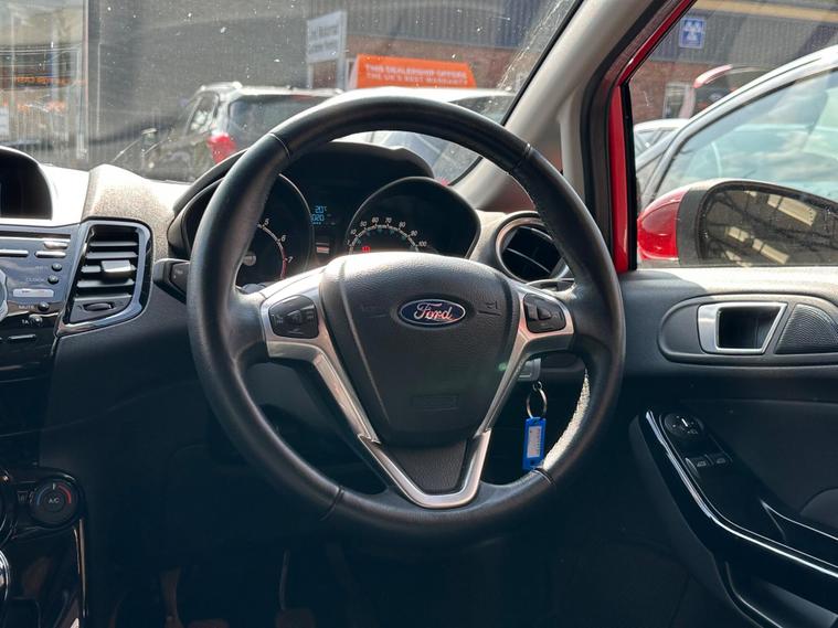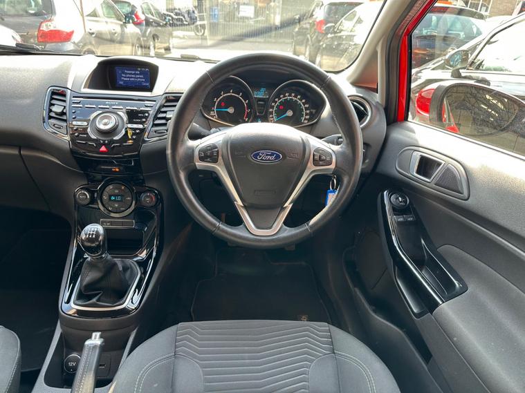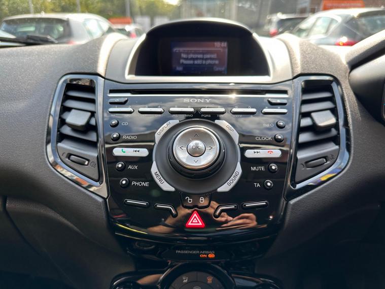 This 2015 Ford Fiesta T Titanium offers an exceptional blend of efficiency and technology, making it a smart choice for any driver. Powered by a 1.0 litre petrol engine, this Euro 6 compliant model boasts impressive fuel economy, achieving a remarkable 66 miles per gallon. The Titanium trim level ensures a comfortable and convenient driving experience, featuring automatic headlights that adjust to lighting conditions and Electronic Automatic Temperature Control for effortless climate management. Stay connected on the go with the integrated Bluetooth hands free phone system, allowing for safe and easy communication.The low CO2 emissions of this Ford Fiesta are a significant advantage, indicating its environmentally conscious design and potentially lower running costs. These highlights, combined with its efficient 1.0 litre engine and the desirable Titanium specification, position this Fiesta as a standout option within its class. It represents a practical and well equipped vehicle that is ready for your daily journeys..