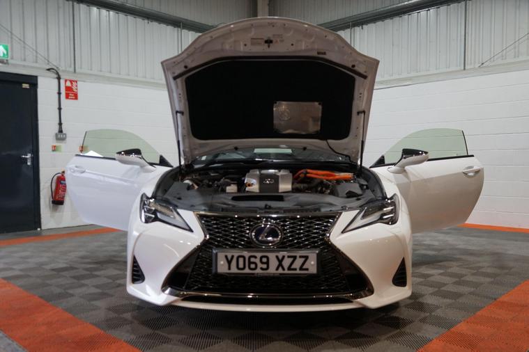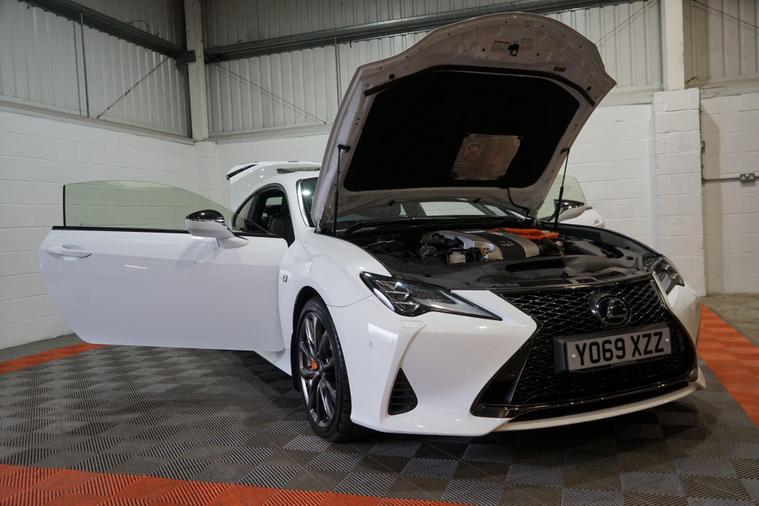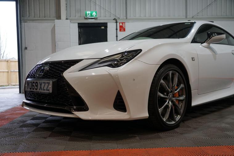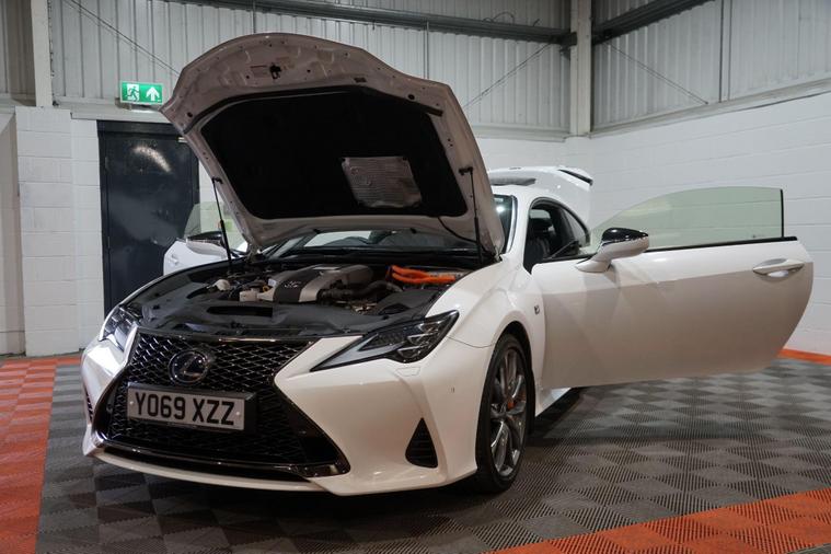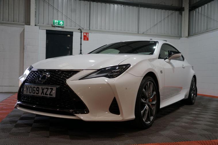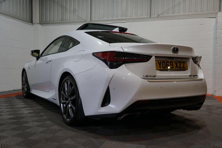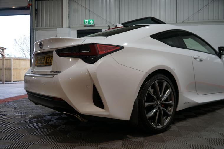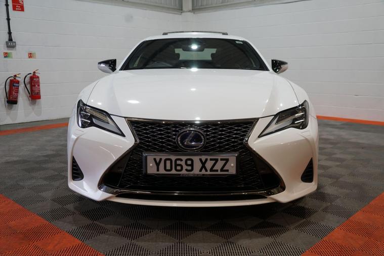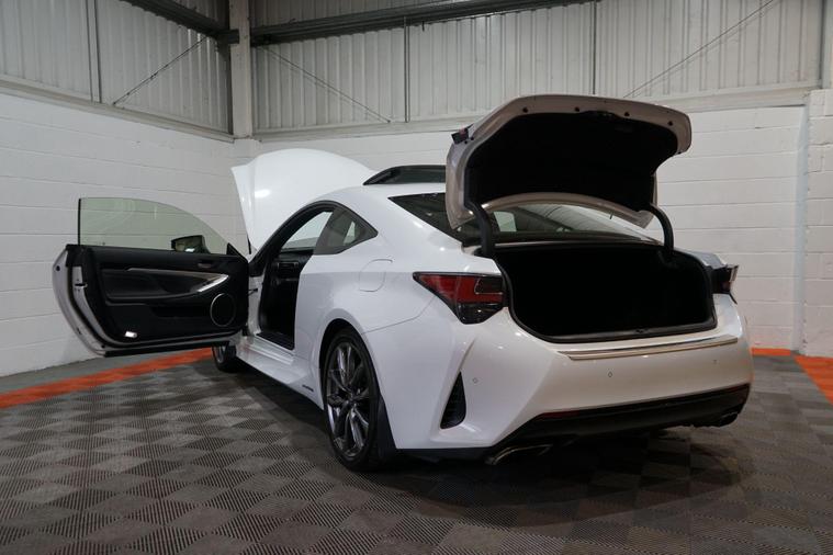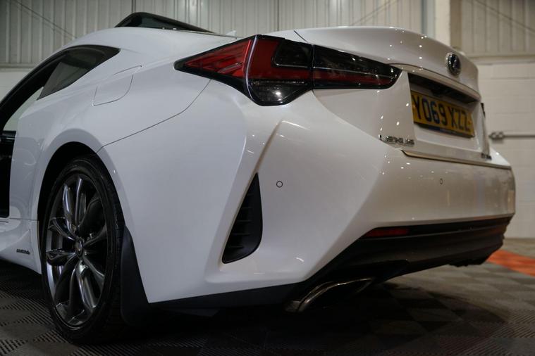 The Lexus RC 2.5 300h F Sport Coupe 2dr Petrol Hybrid E-CVT Euro 6 2019 combines striking coupé styling, refined hybrid efficiency and engaging F Sport dynamics in a premium two-door grand tourer package. Powered by Lexus’s smooth 2.5-litre petrol-electric hybrid system delivering a combined 223 PS, paired with the seamless E-CVT automatic transmission and rear-wheel drive, it offers responsive performance, excellent fuel economy and low emissions.Finished in a premium White Metalic. This example presents beautifully and benefits from full service history. It is HPI clear, with a full report provided for complete peace of mind.Factory specification includes:● F Sport aerodynamic body styling with aggressive front bumper, side skirts and rear diffuser● 19'' F Sport alloy wheels● Sports suspension● LED headlights with daytime running lights● F Sport sports seats with embossed logo● 10.3'' touchscreen infotainment with navigation● Lexus Premium Audio system● Dual-zone climate control● Keyless entry and start● Reversing camera● Cruise control● Rain-sensing wipers and auto headlightsAdditional features include desirable factory upgrades: Panoramic Sunroof (£900) – enhancing the cabin with natural light and an open, airy feel; Blind Spot Monitor System with Rear Cross Traffic Alert (£500) – significantly improving safety and confidence when changing lanes or reversing, plus full service history ensuring reliability and peace of mind.A superbly presented 2019 Lexus RC 300h F Sport Coupe with the efficient hybrid powertrain, blending stylish design, refined performance and excellent build quality. The factory sunroof, safety upgrades and full Lexus service history make this a desirable, low-running-cost and head-turning premium coupé ready to enjoy.All part exchange welcome with competitive valuations available.Walk-around video viewings and nationwide delivery can also be arranged..
