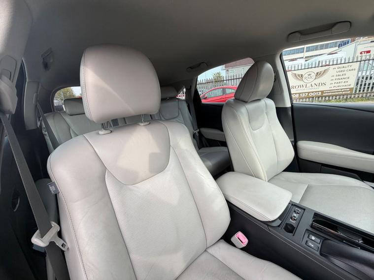 This 2013 Lexus RX 450h Luxury boasts exceptionally low mileage for its age, having covered just 62, 000 miles. This Four Wheel Drive model features a smooth 3.5L Petrol Hybrid engine, offering an impressive 0-62mph acceleration in just 7.8 seconds. It has been owned by only two previous keepers and benefits from HID Bi-Xenon headlights, keyless entry, and dual zone climate control with a pollen filter.The Luxury trim level ensures a comfortable and convenient driving experience, enhanced by Bluetooth connectivity for seamless phone integration and rear parking sensors to aid manoeuvrability. The low insurance group rating is a notable advantage, indicating that running costs are likely to be more economical compared to similar vehicles. This Lexus RX 450h Luxury represents a well maintained and desirable option for those seeking a premium hybrid SUV..