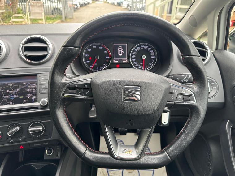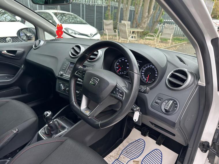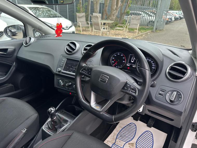 WHITE, SERVICE HISTORY (7-SERVICE STAMPS) , FINANCE AVAILABLE, ONLY TWO FORMER KEEPERS, NAVIGATION SYSTEM , SPARE KEY, PRIVACY GLASS , START/STOP, CRUISE CONTROL, ULEZ COMPLIANT, SUPERB DRIVE, VERY ECONOMICAL, ALLOY WHEELS, CLIMATE CONTROL, VERY WELL LOOKED AFTER, VERY CLEAN IN AND OUT.This 2016 SEAT Ibiza TSI FR boasts exceptionally low mileage for its age, having covered just 66, 860 miles. This well maintained example, with a clear vehicle history check, features a spirited 1.2 litre petrol engine and meets Euro 6 emissions standards. The FR trim level enhances its appeal, offering a sporty aesthetic and driving experience.The Ibiza TSI FR is equipped with a range of convenient features designed to make every journey more enjoyable. Stay connected and entertained with Bluetooth audio streaming and phone connectivity, while the automatic headlights, activated by a light sensor, provide added peace of mind. Air conditioning ensures a comfortable cabin environment regardless of the weather. Its impressive 0-62mph acceleration time of 9.1 seconds demonstrates a lively performance that sets it apart from many other vehicles in its class..
