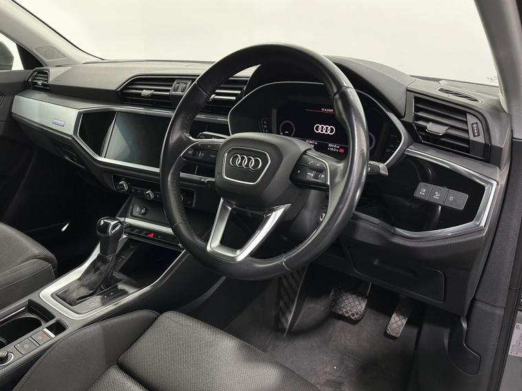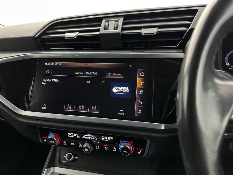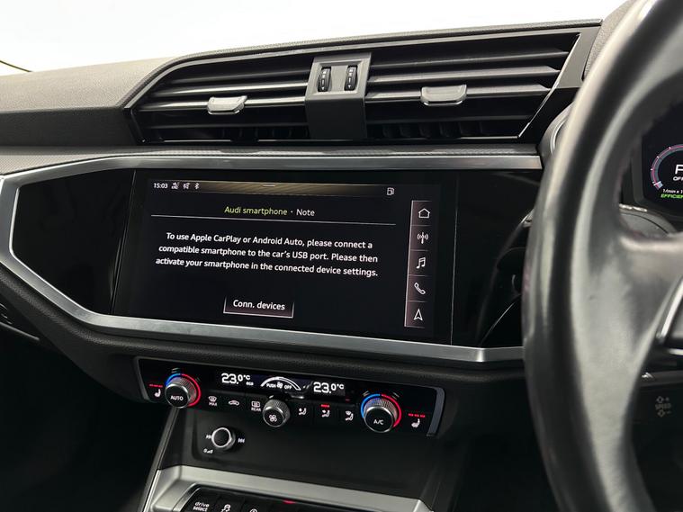 Our AUDI Q3 is finished in Chronos Grey Metallic and comes with optional extras worth of £1, 870.APPLE CARPLAY & ANDROID AUTO | AUTOMATIC ALL LED HEADLIGHTS | SATELLITE NAVIGATION SYSTEM | FRONT & REAR PARKING SENSORS | 18'' ALLOY WHEELS | BANG & OLUFSEN SOUND SYSTEM | FRONT HEATED SEATS | LANE CHANGE ASSIST | BLUETOOTH WITH AUDIO STREAMING | TWO-ZONE CLIMATE CONTROL | ELECTRIC TAILGATE | CRUISE CONTROL | DAB TUNER | MULTIFUNCTIONAL STEERING WHEEL | RAIN SENSORS | USB CONNECTIVITY | FOLDABLE REAR SEATS.This vehicle's specification has been provided by the leading data supplier CAP HPI, which provides vehicle data across the whole of the industry. However, we cannot guarantee the accuracy of any data provided by 3rd Party sources as the specification can sometimes vary. Please check with a salesperson and ensure you physically inspect the vehicle in respect of any items which may affect your decision to purchase. FOR FULL SPEC PLEASE CHECK BELOW.