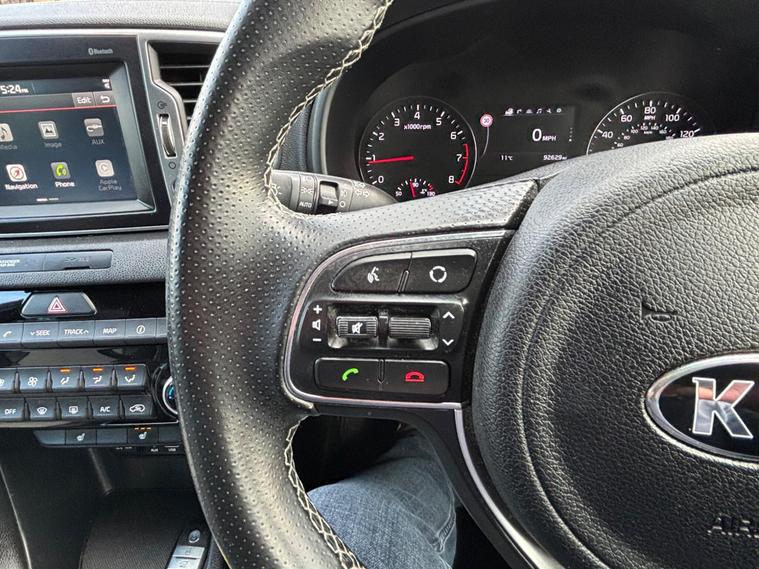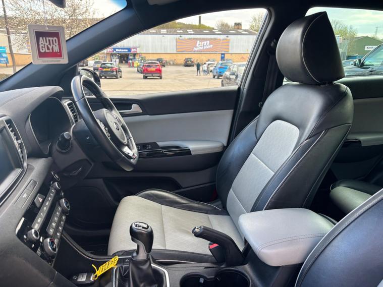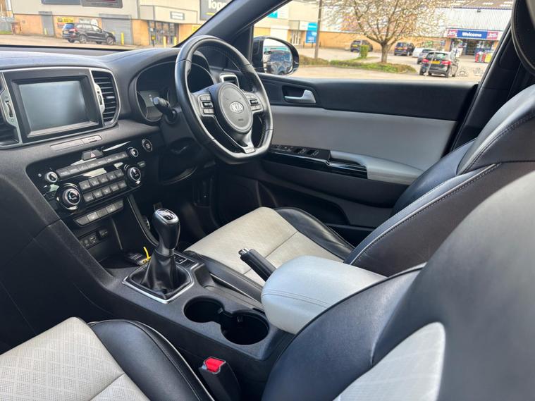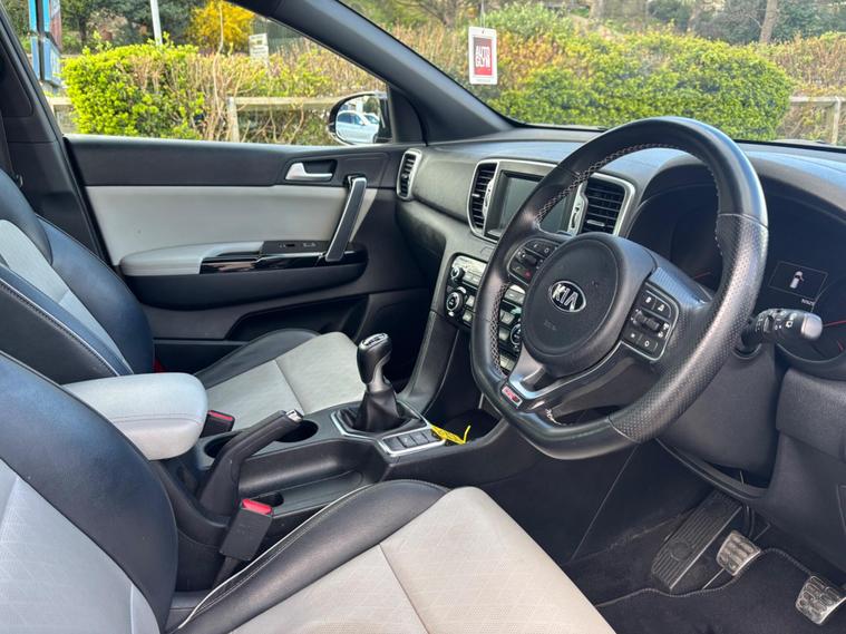 Black Pearlescent | 174 BHP | Full Service History | Heated Front & Rear SeatsWe are pleased to offer this highly desirable, high-specification, and well maintained Kia Sportage GT-Line. This Euro 6 petrol SUV is finished in the stunning Black Pearlescent Metallic and is complemented by a premium two-tone black leather interior with grey inserts.Vehicle OverviewMileage: 92, 616 sensible miles from new.Ownership: Only 2 owners (last owner since April 2021).Performance: 174 BHP turbocharged model offering a dynamic driving experience.Condition: Excellent condition throughout; drives superbly with Kia’s renowned build quality.MOT: Valid until 9th April 2027.Outstanding Service RecordThis Sportage has been cherished and is backed by an exceptional record of eight services:16, 068 | 30, 953 | 39, 346 | 49, 774 | 60, 779 | 72, 494 | 86, 600 | 92, 616 miles.Documentation: Stamped service book, original handbook pack, and 2 keys included.Full GT-Line SpecificationThis model is packed with modern technology and luxury comfort features:Connectivity: Satellite Navigation, Apple CarPlay & Android Auto, DAB Tuner, and Media/Bluetooth dealer's website Heated Front and Rear Seats (rarely found in this class), multi-function steering wheel, and dual-zone climate control.Driver Aids: Parking Distance Control with Reversing Camera and Cruise Control.Convenience: Full electric pack with power-fold door mirrors.Styling: GT-Line exterior body styling, tinted privacy glass, and signature alloy wheels.Added ValueHPI clear with certificate.Six months nationwide warranty included.Any trial or inspection is welcomed.Viewing is essential to appreciate this truly cherished example of Britain's favourite SUV.About UsWe have been established in Baildon for over 20 years. All our vehicles are fully inspected, prepared, and valeted.Finance: We are finance specialists.Part Exchange: Welcome.Payments: All major credit and debit cards accepted.Opening Times: Open 7 days a week.Postcode: BD17 7EX.