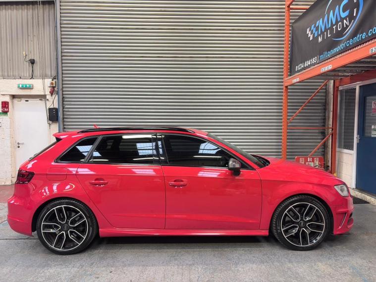 This 2014 Audi S3 TFSI boasts exceptionally low mileage for its age, having covered just 80, 000 miles. This premium hatchback is equipped with a powerful 2.0 litre petrol engine and a four wheel drive drivetrain, ensuring excellent traction and performance. It meets Euro 6 emission standards, reflecting its modern engineering. Inside, you'll find comfort and convenience with heated front seats, dual zone electronic climate control, and Bluetooth mobile telephone preparation for seamless connectivity on the go. The Bi Xenon Plus headlights provide superior illumination for safer driving.The Audi S3 TFSI offers a compelling driving experience, highlighted by its impressive acceleration of 0 to 62 miles per hour in just 4.9 seconds, a figure that sets it apart from many other vehicles in its class. This performance is complemented by a generous boot space, making it a practical choice for everyday use and longer journeys alike. The combination of its dynamic capabilities, advanced features, and low mileage makes this Audi S3 a standout option for those seeking a sophisticated and capable premium hatchback..
