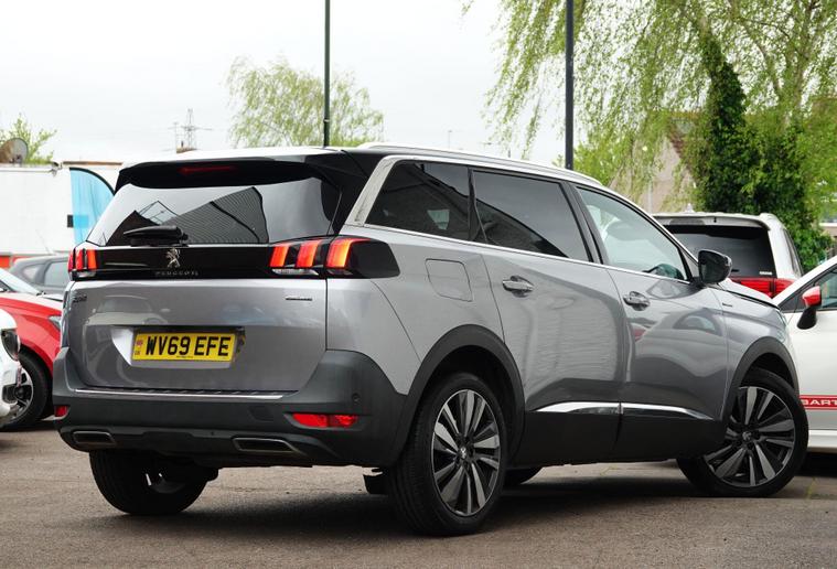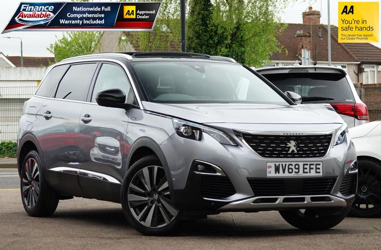 With a full service history and a clear vehicle history check, this 2019 Peugeot 5008 GT Line Premium offers excellent provenance. This 1.6L petrol model, registered in 2019, is a Euro 6 compliant vehicle with a low mileage of 49, 258 miles, which is notably low for its age. It features a spacious interior with seven seats, making it ideal for families. Notable features include heated front seats with memory function, automatic dual zone climate control, and a panoramic opening glass roof with an electric interior blind and blue ambient lighting. The car also boasts a head up instrument panel with blue ambient lighting and a smart electric tailgate with keyless entry.This Peugeot 5008 GT Line Premium stands out with its impressive acceleration, reaching 0-62mph in just 8.3 seconds, indicating a more dynamic driving experience compared to similar vehicles. Its large boot space offers practicality for all your needs, while its low CO2 emissions highlight its efficiency. For your peace of mind, the vehicle comes with a 3 month warranty and a 12 month MOT will be provided on purchase. The last service was completed at 49, 258 miles on 2026-04-13, further assuring its well maintained condition..