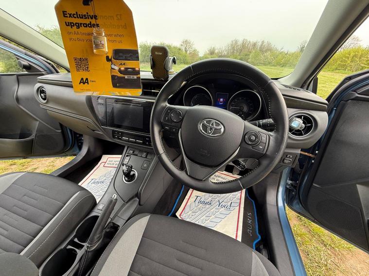Toyota Auris 1.8 VVT-h Design Hatchback 5dr Petrol Hybrid CVT Euro 6 (s/s) (136 ps)ULEZ COMPLIANT | HYBRID AUTOMATIC | LOW MILEAGE | HIGH SPECA very well-maintained Toyota Auris Hybrid Design, offering smooth automatic driving with excellent fuel economy. Powered by the reliable 1.8 VVT-h hybrid system (136 ps), ideal for both city and motorway driving.Key Features• Automatic CVT Gearbox• Hybrid Efficiency• Satellite Navigation• Apple CarPlay & Android Auto• Cruise Control• Rear View Camera• Parking Sensors• Touchscreen Infotainment• 2 Keys• Alloy Wheels• Air Conditioning• Warranted Mileage• HPI Clear• ULEZ FreeCondition & DriveMechanically perfect – engine wise powerful, gearbox and suspension very smooth. Very well maintained car with comfortable seats. Looks and drives brilliant. Extremely economical and low insurance. Truly superb throughout – first to see will buy.Warranty & PreparationFULL DEALER HISTORY, FRESH SERVICE, FRESH MOT, FREE BREAKDOWN COVER, NATIONWIDE DELIVERY AVAILABLE3 MONTHS WARRANTY INCLUDED – EXTENDABLE UP TO 2 YEARSView By Appointment Only – Part Exchange Welcome.