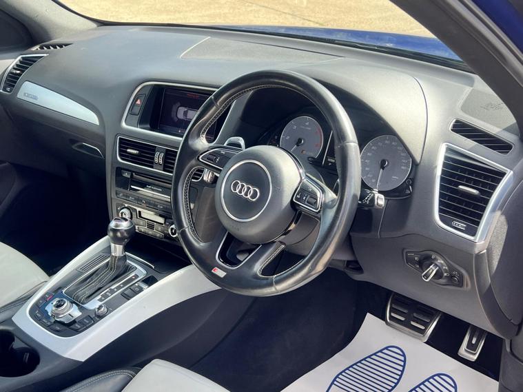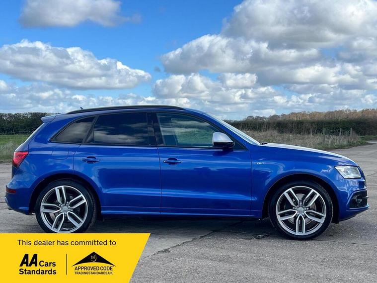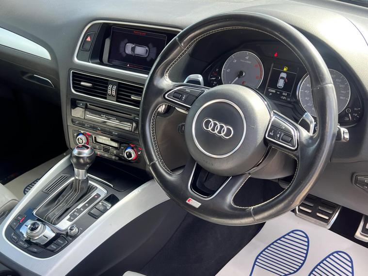 This 2015 Audi SQ5 BiTDI V6 boasts a clear vehicle history, offering peace of mind for its next owner. Under the bonnet, a powerful 3.0L Diesel engine paired with Four Wheel Drive ensures a dynamic driving experience. This model comes equipped with Deluxe 3-Zone Climate Control for optimal comfort, Bi-Xenon Plus headlights with automatic activation, and rear parking sensors to aid manoeuvrability. Stay connected on the go with the integrated Bluetooth mobile telephone preparation.The Audi SQ5 stands out with its impressive performance, achieving 0-62mph in just 5.1 seconds, demonstrating its superior acceleration compared to similar vehicles. Its large boot space provides ample room for luggage or shopping, making it a practical choice for families and adventurers alike. Furthermore, this SQ5 benefits from a low insurance group, indicating that running costs are more economical than many comparable cars. With a substantial towing weight of 2400 kg, it is also well suited for towing caravans or trailers..