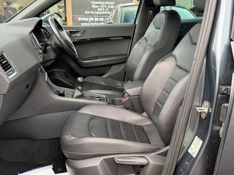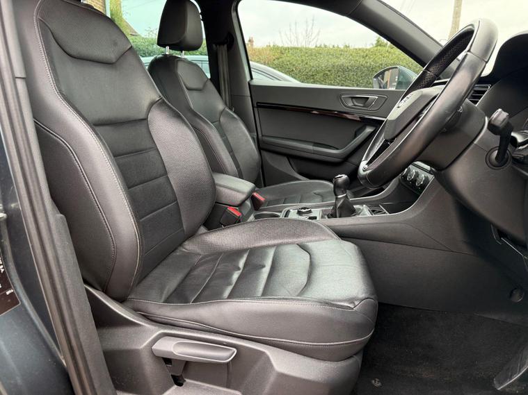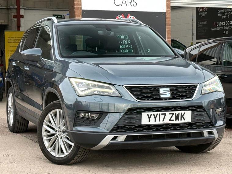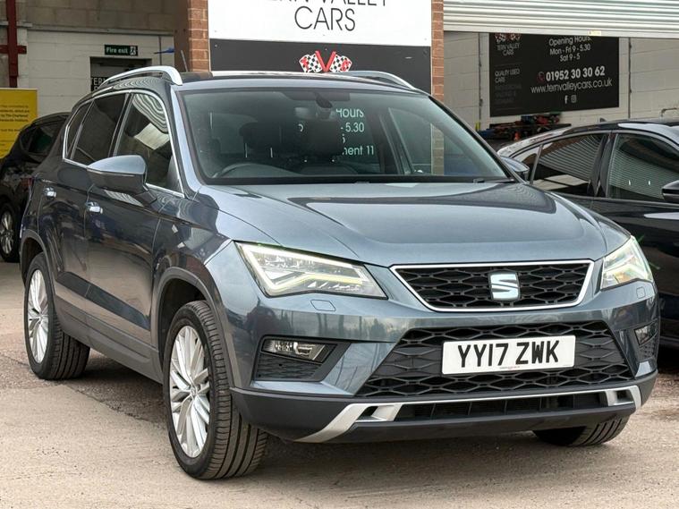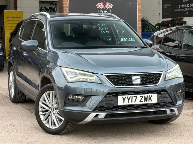 Boasting a full service history with its last service completed at 87, 546 miles on 2025-10-06, this 2017 SEAT Ateca TDI XCELLENCE is a well maintained example that had Seat dealership servicing to June 2022 at 51811mi when Cambelt/Water pump was replaced. This Four Wheel Drive model features a 2.0L Diesel Engine and meets Euro 6 emissions standards. With only two previous owners, this Ateca comes with a 6 month warranty and a 12 month MOT provided on purchase. Rodium Grey Metallic with full Black Leather interior, with other notable features including Satnav Media DAB radio system with a rear view camera & parking assistance, a winter pack with heated seats, and a convenience pack with automatic headlights. It also benefits from full LED headlights and dual zone climate control for your comfort. All handbooks. 2 x keys. We sell with a new MOT & 6 Months Warrantywise Gold Warranty. 12 Months AA Breakdown Membership included. AA Driveaway 5 Day Insurance available - Only £44.99 NEED FINANCE? No Problem - SAF Registered. Hire purchase rates from 9.9% APR & PCP available, please ask. Simply click 'Apply for finance' on our website dealer's website We are a FCA registered dealership.This SEAT Ateca stands out with its impressive fuel economy, achieving a highlight of 55 mpg, which is better than many similar vehicles. Its low CO2 emissions also contribute to its appeal, alongside a low insurance group making it an economical choice. Furthermore, you will appreciate the large boot space, offering ample room for all your needs..
