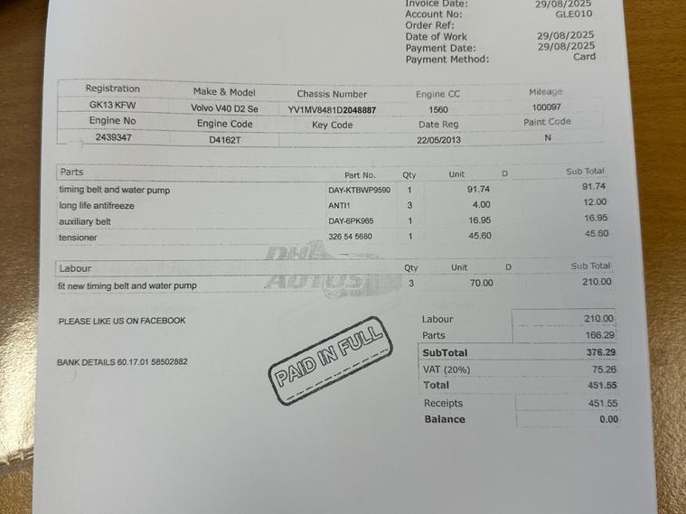 ✅FULL SERVICE HISTORY✅TIMIMG BELT AND WATER PUMP DONE✅ Free 6 Month Warranty — Repairs can be carried out at any VAT-approved garage nationwide.✅ For Information On More Vehicles, Be Sure to Check Out https:/ dealer's website V40 1.6 D2 SE Euro 5 (s/s) 5dr Manual, Extended Warranty Available, Thorough Mechanical Health Check Carried Out, Nationwide Delivery Available Within 24 Hours Of Purchase, AA 12 Months Breakdown Cover Included, Full Service History Which Encompasses 10 Previous Services - Including Being Freshly Serviced By Us at The current Mileage, New Timing Belt And Water Pump Done On 29/08/2025 at 100097 miles (Refer To Pictures)HPI Clear - Meaning All Checks Have Been Passed, AA Approved, 78.5 Miles Per Gallon, 1 Previous Owner, 2 Keys, £20 Road Tax, Fresh 12 Months MOT Which Expires On 09/04/2027 - With No Advisories.This Vehicle Has Various Features That Are Unique To It, These Include: Heated Front Seats, Adaptive Brake Lights, Bluetooth Handsfree System, Cruise Control, Daytime Running Lights, Dynamic Stability Control, Headlights - Levelling System, High Performance Audio System, Keyless Drive, Level Sensor, Locking Wheel Nut, Power Steering System, Rain Sensor, Traction Control, In Perfectly Great Driving Order, Comfortable To Drive, Immaculate Inside And Out, Looked After Well, Nationwide Delivery Available, Ready To Drive Away And With Many More Great Features. Every Vehicle Goes Through A Mechanical Health Check Prior To Sale. We Excel In Our Customer Service & Want The Best For All Our Customers. We Cater To All Our Customer Needs In Order To Make Purchasing Experience For All Our Customers Perfectly Smooth, Easy And Straight-forward. Come Into Our Premises Today & We Will Guarantee You An Excellent Experience. Customers Always Turn From Our Door With An Excellent Purchased Vehicle, With Great Experience & With A Smile. We Guarantee You Will Never Turn Your Back On Our Vehicles. Just Call For Viewings & Test Drives..