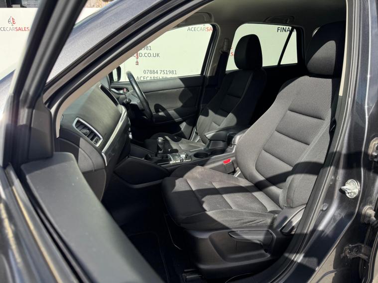 **PX TO CLEAR** FINANCE & PCP AVAILABLE, COMPLEMENTARY WARRANTY INCLUDE, WE TAKE PART EXCHANGE! Mazda CX-5 2.2 SKYACTIV-D SE-L Nav Euro 6 (s/s) 5dr Manual 6 Speed. HPI Clear, 10 Months MOT, 1 Owner, 2 Keys, EURO6 ULEZ Compliant, £35 TAX, Fuel Consumption 61.4MPG, Insurance Group 18, Keyless Start, Cruise Control, Speed Limiting Function, Start/Stop Function, Parking Sensors, Smart City Brake Support, Secondary Collision Reduction, Electronic Power Assisted Steering, Hill Hold Assist, Traction Control System, Anti Lock Braking System, Emergency Brake Assist, Electronic Brakeforce Distribution, Dynamic Stability Control, Tyre Pressure Monitoring System, Dusk Sensing Automatic Headlights, Headlights - Halogen, Daytime Running Lights, Front Fog Lights, Automatic Rain Sensing Wipers, Electric Windows, Electric Mirrors, Powerfolding Mirrors, Automatic Dual Zone Climate Control, Air Conditioning, Front And Rear Screen Demister, Colour Touchscreen Media Interface, Navigation, Bluetooth, Radio, AUX, USB, Telephone Connection, Voice Control, Multifunctional Steering Wheel, Drivers Information Cluster, Black Cloth Design Seats, Gloss And Aluminium Design Interior Trims, Exterior Badging, Privacy Glass, 17inch Alloy Wheels.ALL VEHICLES ARE FULLY INSPECTED PRIOR TO SALE. We welcome you to view and test drive our showroom condition vehicles. Wish to make this purchase hassle free with ease? Feel free to enquire about our competitive Financial packages. We can assist you in securing finance for your New car with ease- regardless of your credit status/history. All of our cars are regularly price checked to be amongst the most competitive on the market! We include a COMPLEMENTARY WARRANTY on all our vehicles. Ace Car Sales Heywood is a well established Family run business with 30+ years of experience in the Motor trade industry! We pride ourselves on offering a personalised service to suit your needs. Visit our website for more information on our vehicles - dealer's website 'Buy With Confi.
