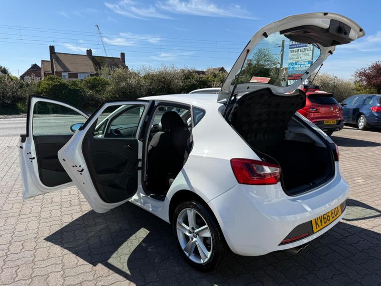 ON FORMER KEEPER, SERVICE HISTORY, 6 MONTHS WARRANTY, 12 MONTHS MOT, Experian clear, 2 keys, just serviced, all prev MOT’s avail, we are located at 1-9 WALTON ROAD FRINTON ON SEA ESSEX CO13 0AA, PART EXCHANGE WELCOME, FINANCE AVAILABLE, This 2016 SEAT Ibiza TSI FR boasts exceptionally low mileage for its age, having covered just 40, 400 miles. This particular model, a Euro 6 compliant 1.2 litre petrol, comes in the sporty FR trim and benefits from a Experian clear vehicle history check. For your peace of mind, it includes a 6 month warranty and will be supplied with a fresh 12 month MOT. The last service was completed on 04 April 2026, ensuring it's up to date. Notable features include automatic headlights with a light sensor, a convenience pack, air conditioning for comfortable journeys, and Bluetooth connectivity for both phone calls and audio streaming.The performance of this Ibiza is a key highlight, with an impressive 0-62mph acceleration time of just 9.1 seconds, demonstrating its responsiveness. This swift acceleration, combined with its low mileage and comprehensive service history, sets this Ibiza apart from other vehicles of its kind. The inclusion of features like the convenience pack and Bluetooth further enhances its appeal, offering a well equipped and enjoyable driving experience..