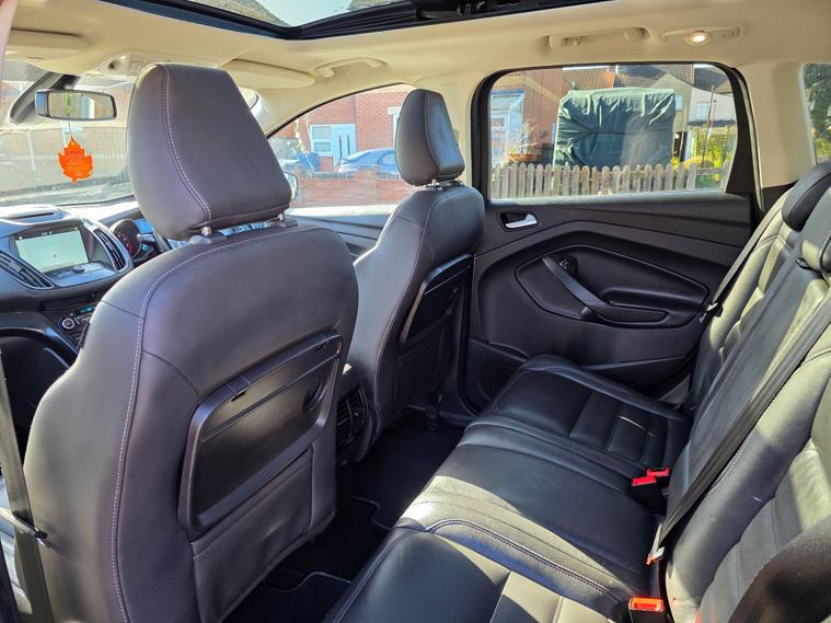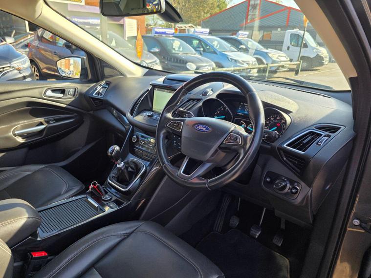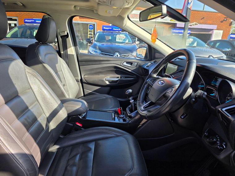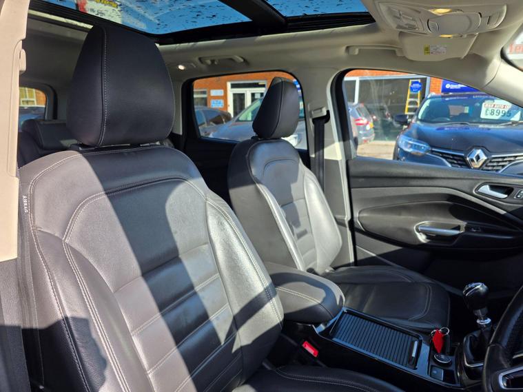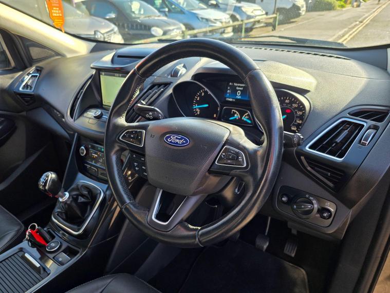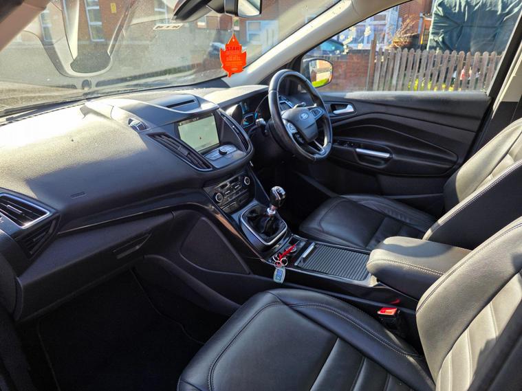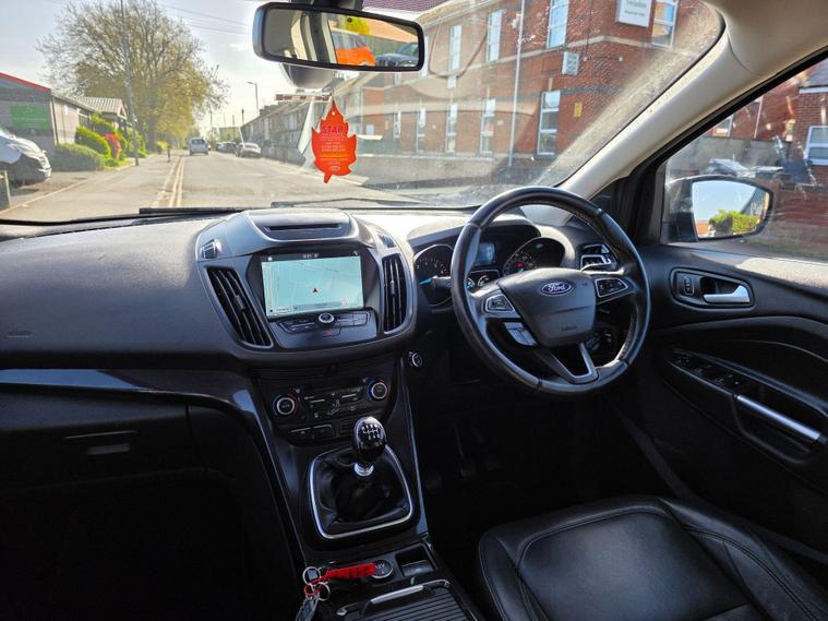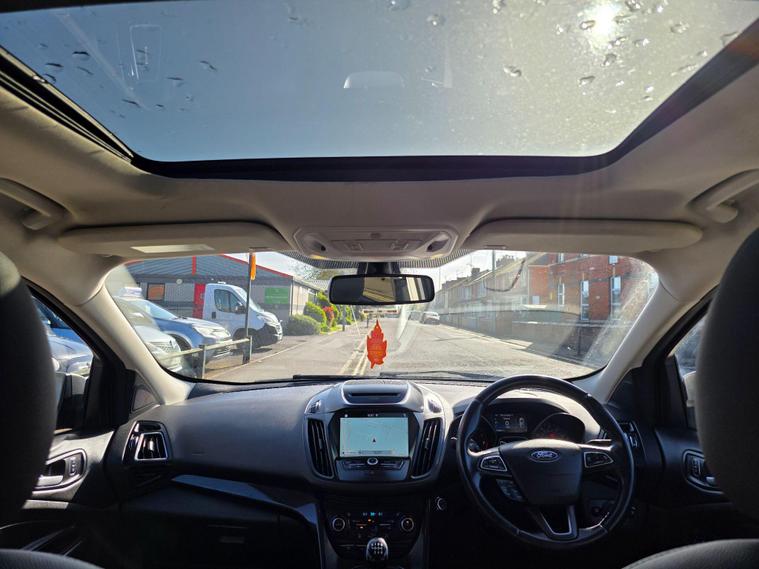 This 2017 Ford Kuga ST-Line X is a superb example, having been cherished by only two owners from new. Powered by an efficient 1.5 litre petrol engine and meeting Euro 6 emissions standards, this model boasts the desirable ST-Line X trim. It comes equipped with the ST-Line Style Pack, featuring striking Xenon headlights, and the Driver Assistance Pack, which includes Blind Spot Assistance for added safety. Navigating and staying connected is effortless thanks to the Premium Ford DAB Navigation System with Ford SYNC3, offering Bluetooth connectivity and rear camera parking assistance. Comfort is further enhanced with a heated steering wheel and a power opening panoramic roof, creating a bright and airy cabin.The Kuga ST-Line X offers a compelling blend of sporty styling and advanced technology. The inclusion of the ST-Line Style Pack and Driver Assistance Pack clearly sets this vehicle apart from others in its class, providing enhanced aesthetics and crucial safety features. The premium navigation system and convenient parking aids make every journey more enjoyable and stress free. Combined with the comfort of a heated steering wheel and the expansive feel of the panoramic sunroof, this Ford Kuga represents a well appointed and thoughtfully equipped choice for any driver..