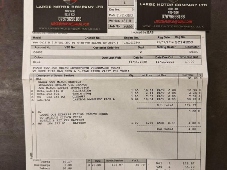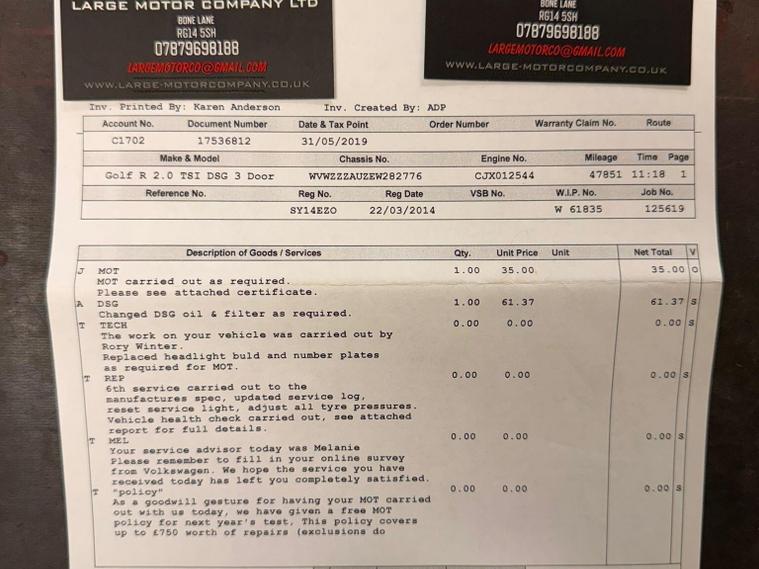 This 2014 Volkswagen Golf R boasts a MASSIVE SPECIFICATION with carbon 2 tone leather , digital dash upgrade , 19-inch Pretoria alloys , pan roof, pro navigation & much much more , it comes with a full service history, including a gearbox service December 2020, a haldex service November 2023 , a major service which includes cam chain & water pump July 2024 with its last service to be completed at 95, 903 miles at point of sale , offering you peace of mind & a very well maintained golf R . This particular model is the TSI R variant, featuring a powerful 2.0 litre petrol engine and a four wheel drive drivetrain for excellent handling. It meets Euro 6 emission standards and comes with a 3 month warranty. You'll also benefit from a 12 month MOT provided on purchase. Inside, you'll find luxurious Nappa leather upholstery in Carbon, a Discover Navigation Pro touch screen system, and a Dynaudio premium sound system. The striking 19 inch Pretoria alloy wheels complete the sporty look.Experience exhilarating performance with this Golf R, capable of accelerating from 0 to 62 miles per hour in just 4.9 seconds, a speed that sets it apart from many other vehicles in its class. The electric and sliding glass panoramic sunroof adds an open and airy feel to the cabin, enhancing your driving experience. Furthermore, the generous boot space ensures practicality for all your needs, whether it's for daily errands or weekend getaways..