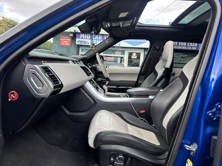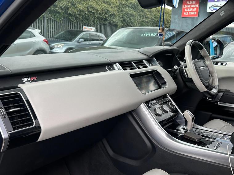 ON V CAR CAT S! This 2017 Land Rover Range Rover Sport V8 SVR boasts exceptionally low mileage for its year, having covered just 48, 500 miles. This premium SUV features a powerful 5.0L petrol engine and a Four Wheel Drive system, meeting Euro 6 emission standards. It offers a substantial towing weight of 3000 kg, making it highly capable. Notable features include Bluetooth phone connectivity, keyless entry for convenience, and adaptive cruise control with queue assist, emergency braking, and active seat belts. Comfort is further enhanced by three zone climate control, and practical front and rear recovery hooks are also included.The V8 SVR variant is designed for exhilarating performance, achieving an impressive 0-60mph in just 4.5 seconds, a figure that sets it apart from many other vehicles in its class. This exceptional acceleration is complemented by a large boot space, providing ample room for luggage or equipment. The combination of its potent engine, advanced technology, and practical design makes this Range Rover Sport a compelling choice for those seeking both performance and versatility..