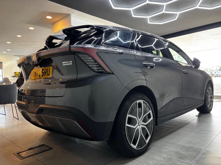 This 2024 MG MG4 Trophy Long Range electric car is a superb example, having had only one owner from new. This striking electric vehicle boasts a 64 kWh battery, offering an impressive maximum range of 279 miles on a full charge. For your comfort and convenience, it features heated front seating, climate control, and Apple CarPlay for seamless smartphone integration. Parking is made easier with rear parking sensors, and the projector LED headlights with reflective technology ensure excellent visibility.The MG4 Trophy Long Range stands out with its substantial boot space, providing ample room for your luggage or shopping. Its electric powertrain offers a full charge at home using a 7kW charger in approximately 10 hours, while rapid public charging can take the battery from empty to 80% in just 34 minutes. These capabilities, combined with its generous 279 mile range, position this MG4 as a highly practical and efficient choice for everyday driving and longer journeys..