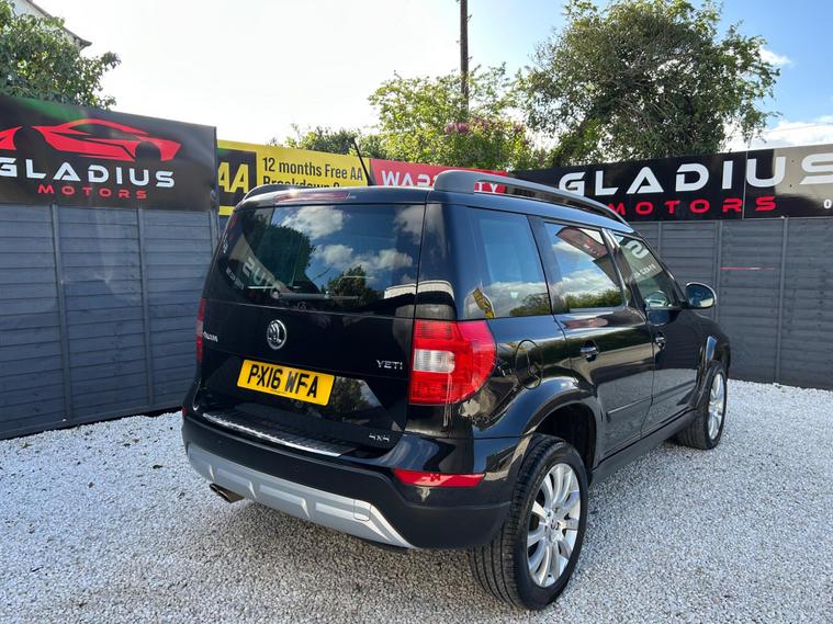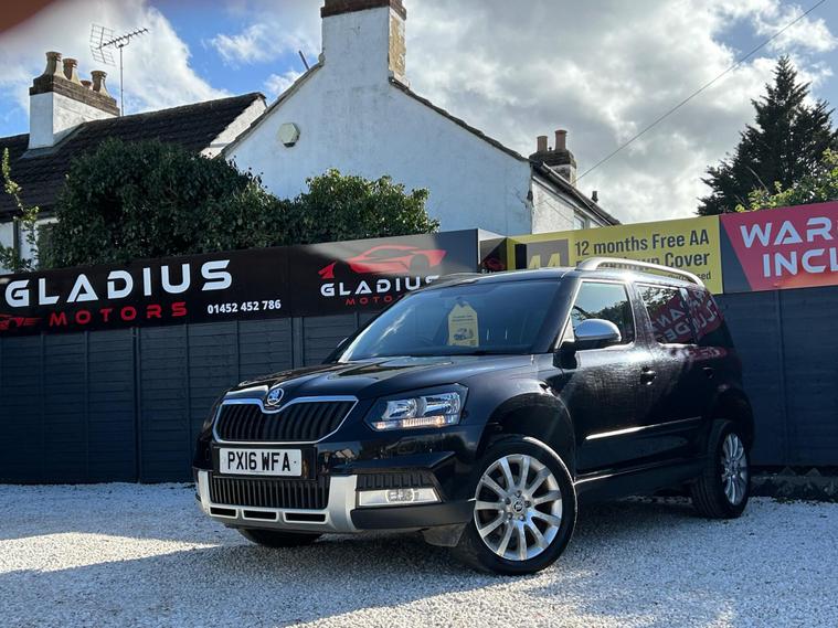 ***VIEWING BY APPOINTMENT ONLY***PART SERVICE HISTORY • JUST SERVICED • NEW CLUTCH & FLYWHEEL (£1200+) • 4 NEW TYRES + TRACKING • CAMBELT & WATER PUMP DONE • NEW 12 MONTH MOT (NO ADVISORIES) • 3 MONTH NATIONWIDE WARRANTY INCLUDED • 12 MONTH AA BREAKDOWN COVER • FINANCE AVAILABLE FROM 12.9% APR • PART EXCHANGE WELCOMEWell presented 2016 Skoda Yeti 2.0 TDI SE Outdoor 4WD Euro 6 finished in black. A practical and capable 4WD SUV offering reliability, space and excellent all-weather performance.This vehicle comes with partial service history and has been just serviced by us, along with major work including a brand new clutch and flywheel fitted (over £1200 spent) and four new tyres with tracking completed, ensuring it is fully prepared for its next owner. It also benefits from a fresh 12 month MOT with no advisories.Importantly, the cambelt and water pump have been replaced by the previous owner, which is a major maintenance item already taken care of.On the road the 2.0 TDI engine delivers strong and reliable performance, making it ideal for both everyday driving and longer journeys. The 4WD system provides added confidence in all conditions, and the vehicle is fully ULEZ compliant.Being the SE Outdoor model, it comes well equipped with rear parking sensors, Bluetooth telephone connectivity, dual-zone climate control, roof rails and 17-inch alloy wheels, offering a comfortable and practical driving experience.Supplied with two keys and fully inspected, prepared and road tested before sale.Overall this is a well prepared and mechanically sorted SUV that offers excellent value and dependable motoring.All vehicles are carefully prepared prior to sale and we welcome any inspection or test drive so you can be completely satisfied.We are proud to be a 5-star rated AA Approved Dealer, giving you additional confidence when buying from us.Please note this is a used vehicle and light age-related marks may be present consistent with age and mileage.Call 01452235712 to arrange a viewing by appointment.