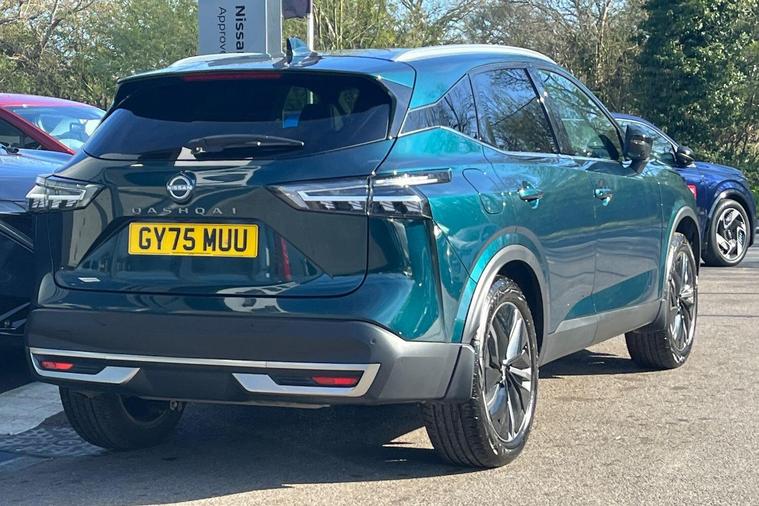 This 2025 Nissan Qashqai DIG-T Tekna is a Nissan manufacturer approved vehicle with only one owner from new. It features a 1.3 litre petrol hybrid engine and meets Euro 6 emission standards. This Tekna trim level comes equipped with a Comfort Pack including a Head Up Display, intelligent auto headlights, and heated front seats for enhanced driver and passenger comfort. Connectivity is seamless with wireless Apple CarPlay, and the ProPILOT Assist with Navi-Link and HUD further elevates the driving experience.The Qashqai offers generous boot space, making it a practical choice for everyday use and longer journeys. The inclusion of features like the Head Up Display and ProPILOT Assist with Navi-Link demonstrates a higher specification compared to many other vehicles in its class, offering advanced technology and convenience. This well maintained, single owner vehicle represents a superb opportunity to acquire a modern and feature rich SUV..