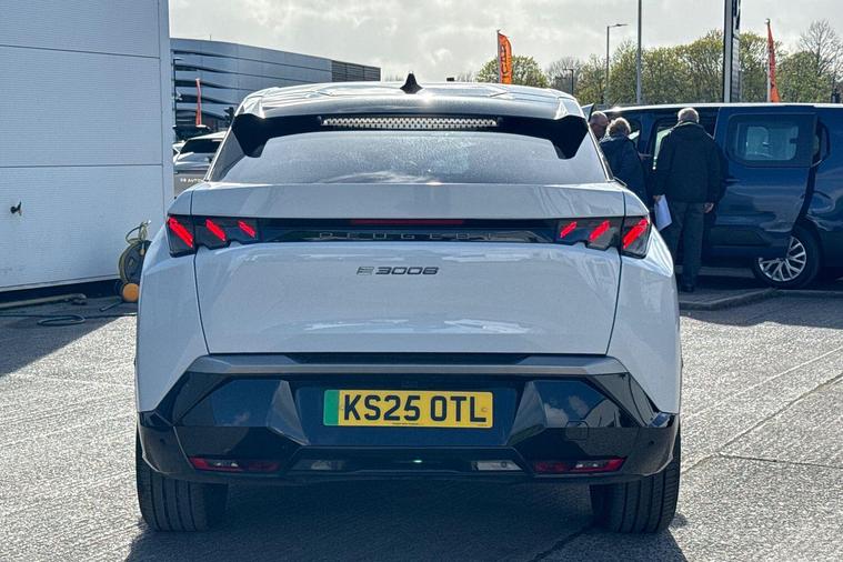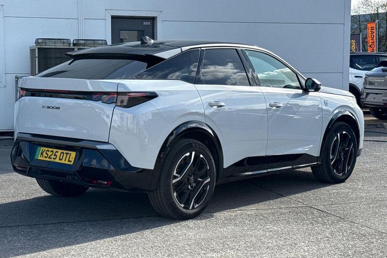 This 2025 Peugeot E-3008 GT is a Peugeot manufacturer approved electric vehicle with a full service history and only one owner from new, offering peace of mind. This striking GT variant boasts an 81 kWh battery, providing an impressive maximum range of 325 miles on a full charge. Inside, you'll find automatic headlights, dual zone automatic climate control, and the advanced PEUGEOT i-Connect system with Android Auto and Apple CarPlay. The compact multifunction steering wheel is heated and finished in full grain leather with distinctive Iced Clay stitching and GT badging, while the quick launch cabin heating and cooling function ensures immediate comfort.The Peugeot E-3008 GT offers exceptional practicality with its large boot space, perfect for all your needs. Its electric powertrain delivers a smooth and efficient driving experience, with a full charge achievable at home in approximately 8 hours using a 7kW charger. For longer journeys, a rapid charge to 80% can be completed in as little as 40 minutes at a public charging station. These features, including the extensive 325 mile range and rapid charging capability, highlight how this E-3008 GT stands out from other similar vehicles, offering a superior electric ownership experience. The vehicle also comes with a 12 month warranty for added reassurance.*Free Wall Box when funded through Stellantuis Financial Services..