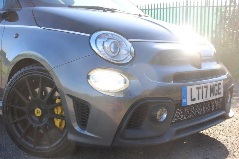 0% deposit fiannce availiable all cases considered. This 2017 Abarth 595 T-Jet Competizione presents exceptionally low mileage for its age, having covered just 45, 570 miles. This particular example, finished in the Competizione trim, boasts a spirited 1.4L Petrol Engine and meets Euro 6 emissions standards. It comes equipped with a 7in Touchscreen Radio featuring Navigation, Bluetooth, USB, and DAB, alongside Bi-Xenon Headlights for enhanced visibility. The striking 17in Alloy Wheels in Matt Black complement the Sabelt Leather-Alcantara interior in Natural Black, and a distinctive Scorpion Antenna Plug adds a final touch.The performance of this Abarth 595 is a key highlight, with a rapid 0-62mph acceleration time of just 6.9 seconds, demonstrating its sporty credentials. This impressive acceleration, combined with its comprehensive feature set and well preserved low mileage, sets it apart from other vehicles in its class, offering a compelling package for any enthusiast..