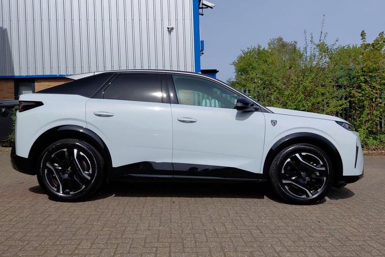 This 2025 Peugeot E-3008 GT is a pristine example, having had only one owner since new. As a fully electric vehicle, it offers a substantial battery total capacity of 81 kWh, providing a maximum range of 325 miles on a full charge. This impressive electric SUV is equipped with the advanced PEUGEOT i-Connect system, seamlessly integrating Android Auto and Apple CarPlay for your convenience. Driving comfort is enhanced by heated front seats and a compact, heated multifunction steering wheel crafted from full grain leather with distinctive Iced Clay stitching and a GT badge.The E-3008 GT also boasts Pixel LED Technology headlights with adaptive high beam assist for superior night time visibility, and a reversing camera with a washing function to ensure a clear view when parking. Charging is efficient, with a full charge at home on a 7kW charger taking approximately 8 hours, and a rapid charge from empty to 80% achievable in just 40 minutes at a public charging station. This model stands out with its generous boot space, offering ample room for all your needs, and its exceptional 325 mile electric range, positioning it as a superior choice for those seeking an electric SUV..
