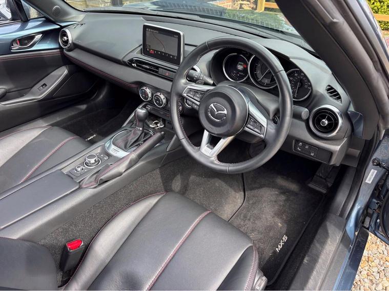 MAZDA + ONE FAMILY OWNER ONLY 10, 000 MILES ! FULL MAZDA/SPECIALIST SERVICE RECORDS + JUST MOTD.SERVICED+ GLEAMING REFLEX BLUE METALLIC+ FULL BLACK HEATED LEATHER SEATS+ HI SPEC+ SAT NAV+ CRUISE+ CLIMATE+ BLUETOOTH+ 17'' SHADOW CHROME ALLOYS + REVERSING SENSORS+ BEST CHOICE OF QUALITY LOW MILEAGE MAZDA MX5 IN THE UK+ PLEASE SEE OUR GOOGLE REVIEWS+ MAZDA MX5 SPECIALIST OVER 25 YEARS SELLING MX5+ MX5 FULLY PREPARED BEFORE DELIVERY.