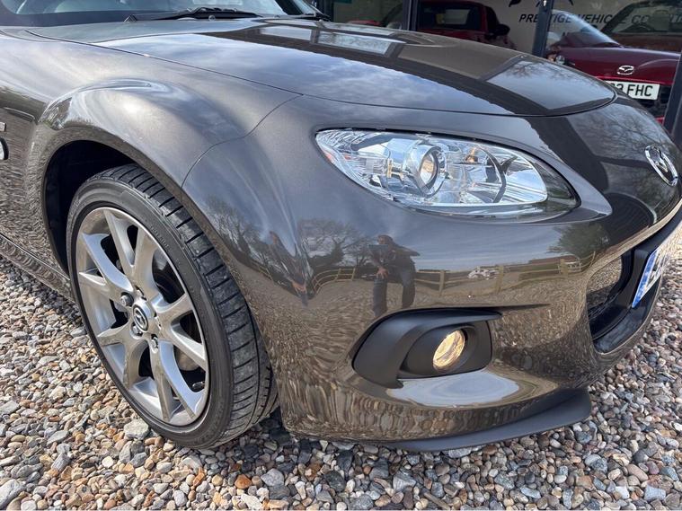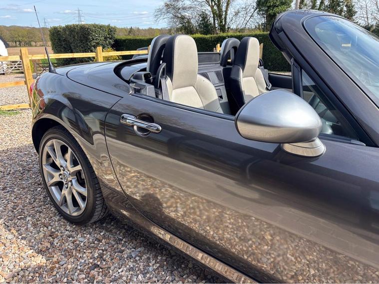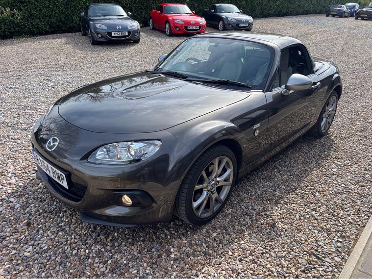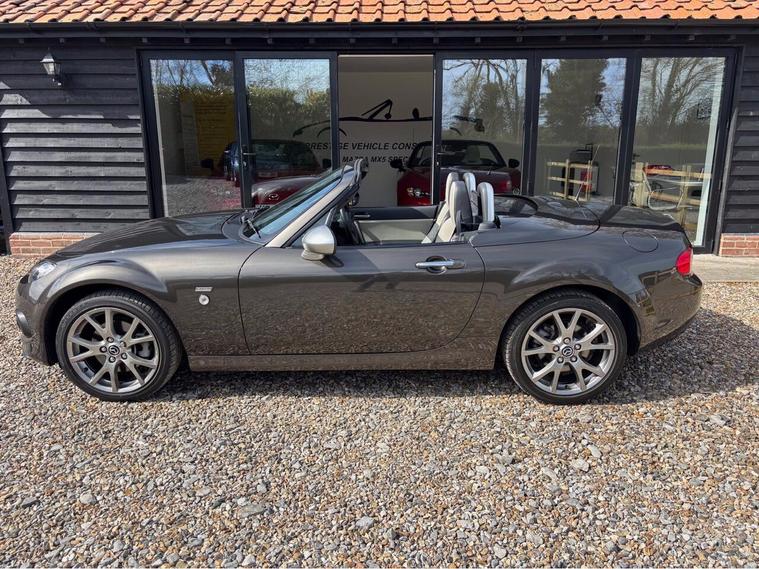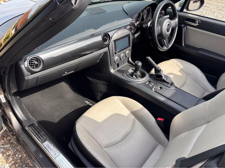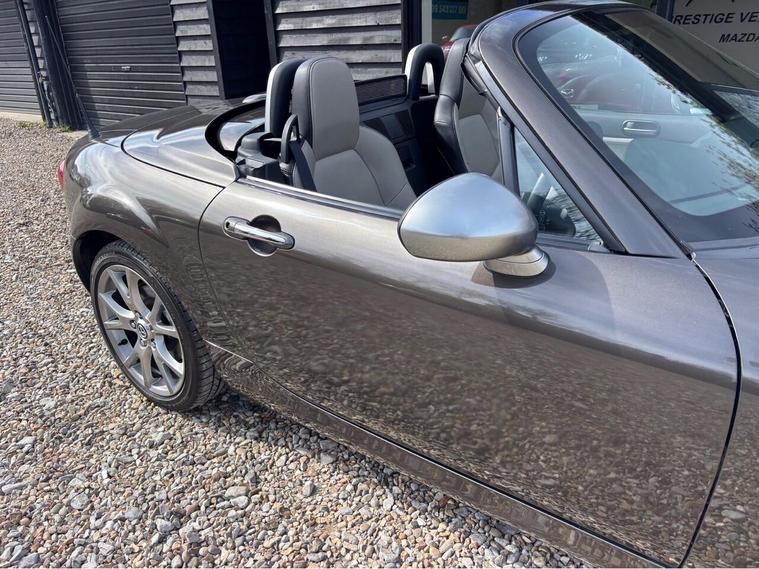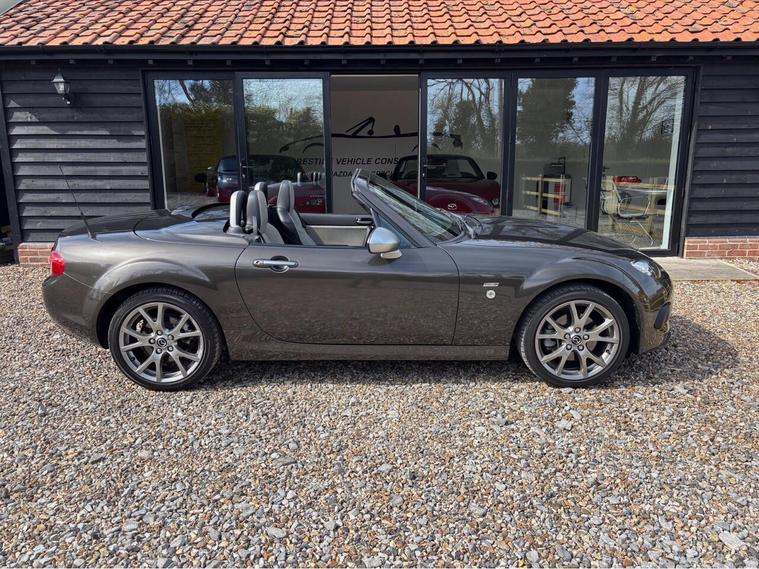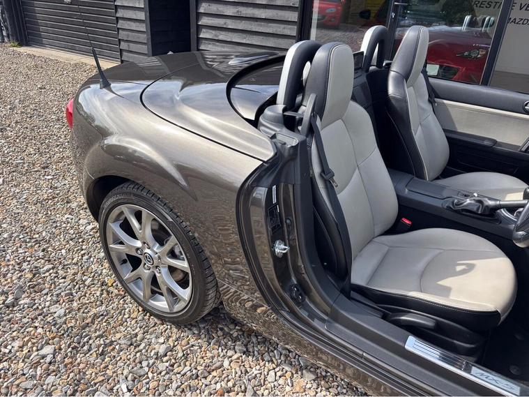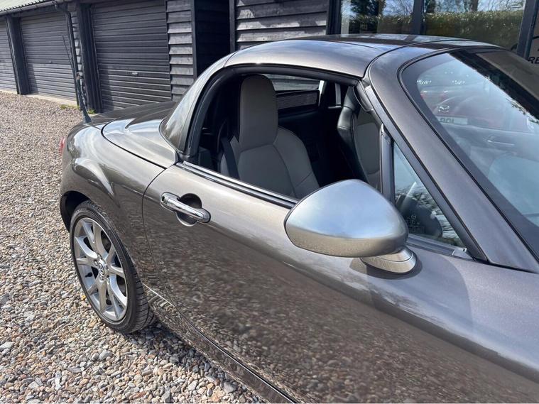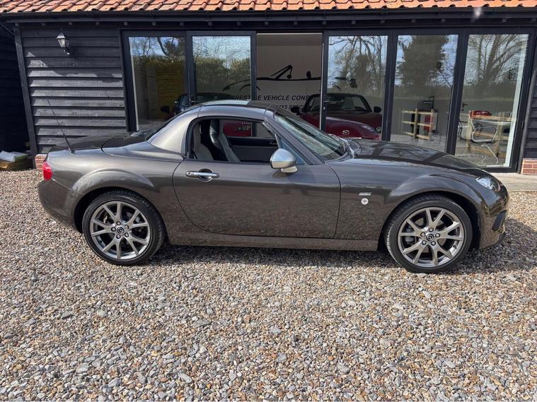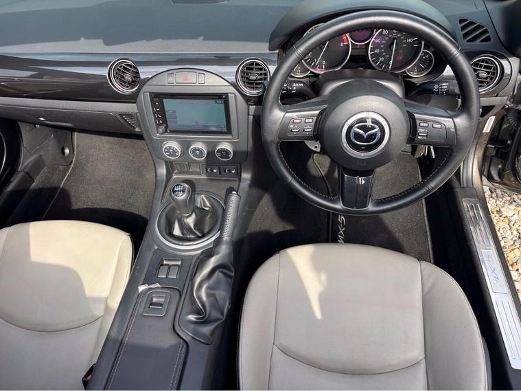 CHERISHED MX5 2, 0 SPORT VENTURE COUPE FOLDING HARDTOP HI SPEC+ MAZDA + 1 OWNER ONLY 25, 000 MILES FULL MAZDA SERVICE RECORDS+ 8 SERVICES+ GLEAMING TITANIUM FLASH METALLIC + FULL HEATED LIGHTSTONE LEATHER+ 6 SPEED+ SAT NAV+ CRUISE+ CLIMATE+ BLUETOOTH+ 17'' Y SPOKE ALLOYS+ REVERSING SENSORS FITTED+ CHERISHED GARAGED MX5 FROM NEW+ BEST CHOICE OF QUALITY LOW MILEAGE MAZDA MX5 IN THE UK+'' PLEASE SEE OUR GOOGLE REVIEWS'' SELLING MX5 OVER 25 YEARS+ ALL MX5 FULLY PREPARED BEFORE DELIVERY.