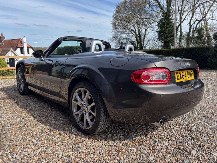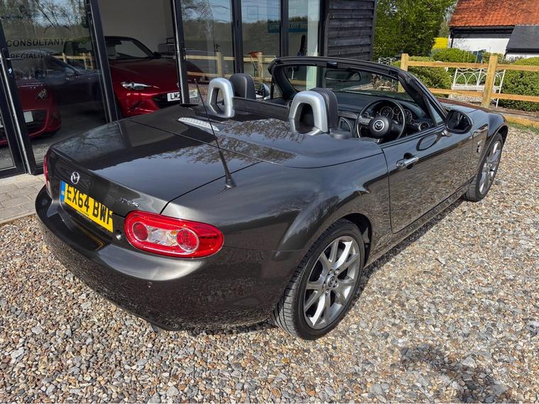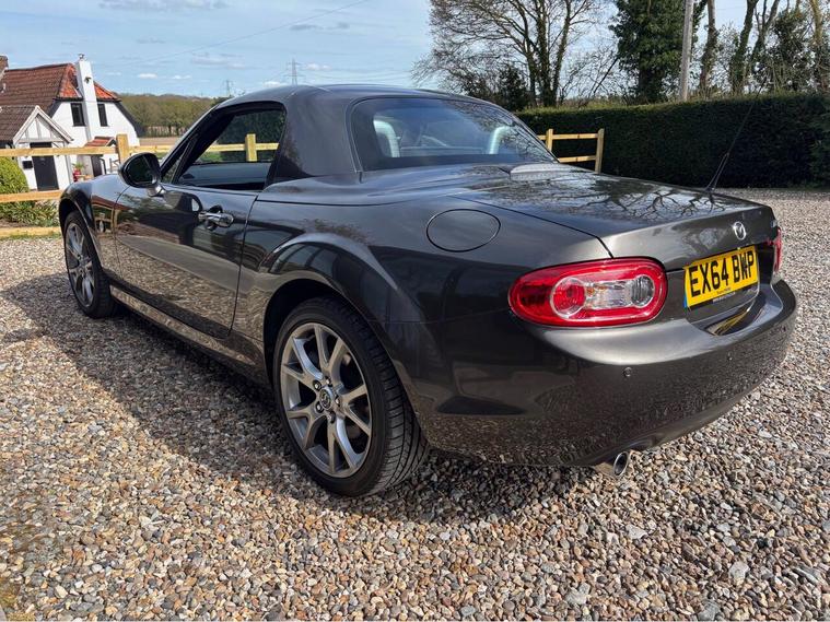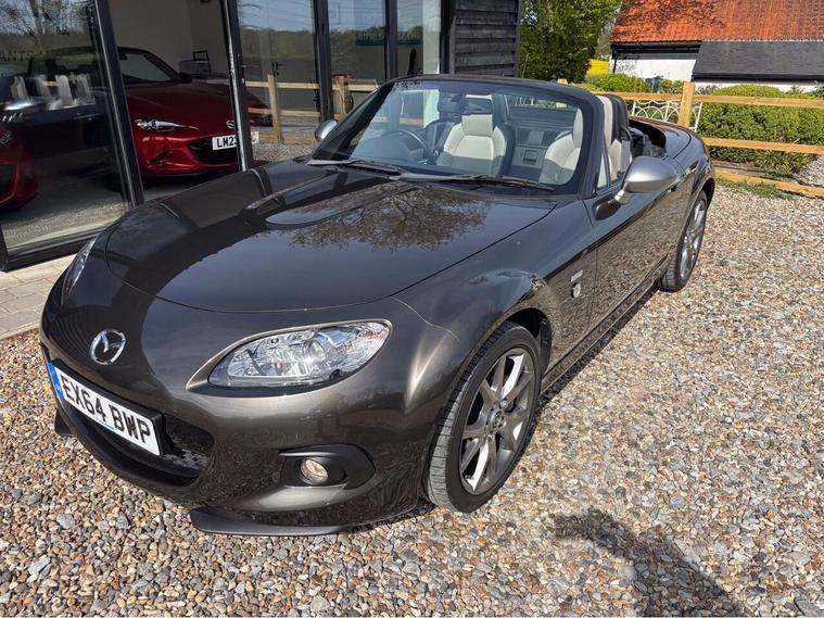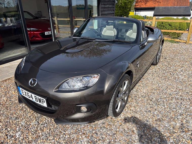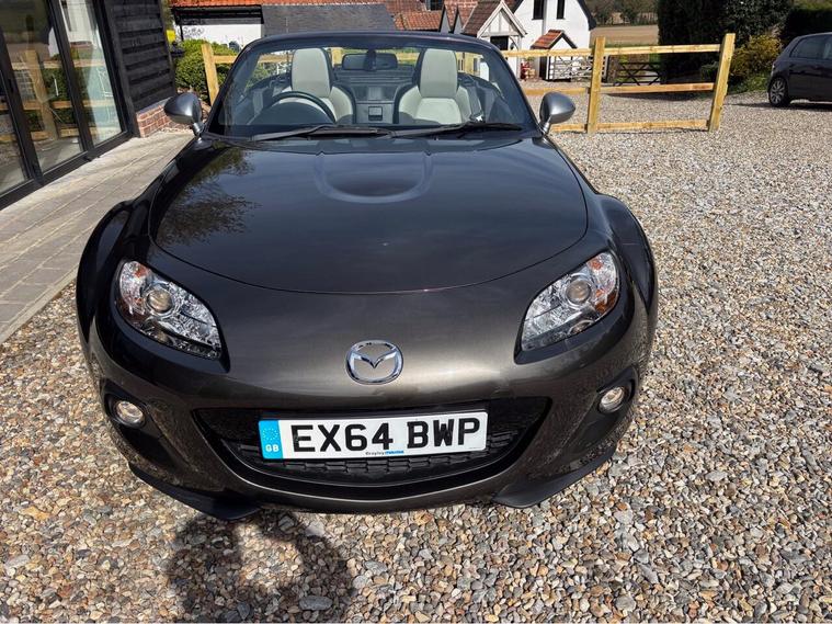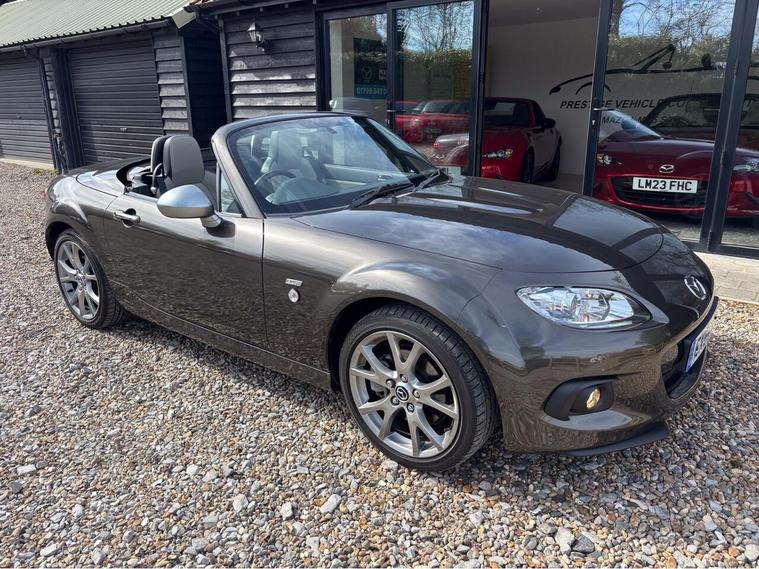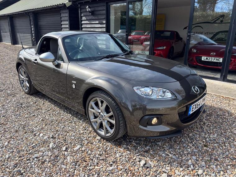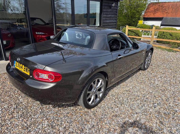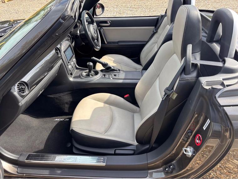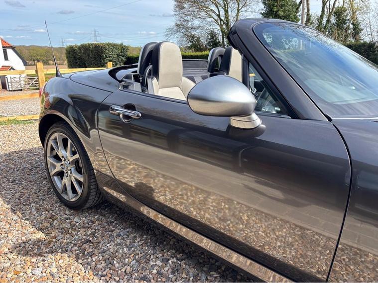 CHERISHED MX5 2, 0 SPORT VENTURE COUPE FOLDING HARDTOP HI SPEC+ MAZDA + 1 OWNER ONLY 25, 000 MILES FULL MAZDA SERVICE RECORDS+ 8 SERVICES+ GLEAMING TITANIUM FLASH METALLIC + FULL HEATED LIGHTSTONE LEATHER+ 6 SPEED+ SAT NAV+ CRUISE+ CLIMATE+ BLUETOOTH+ 17'' Y SPOKE ALLOYS+ REVERSING SENSORS FITTED+ CHERISHED GARAGED MX5 FROM NEW+ BEST CHOICE OF QUALITY LOW MILEAGE MAZDA MX5 IN THE UK+'' PLEASE SEE OUR GOOGLE REVIEWS'' SELLING MX5 OVER 25 YEARS+ ALL MX5 FULLY PREPARED BEFORE DELIVERY.