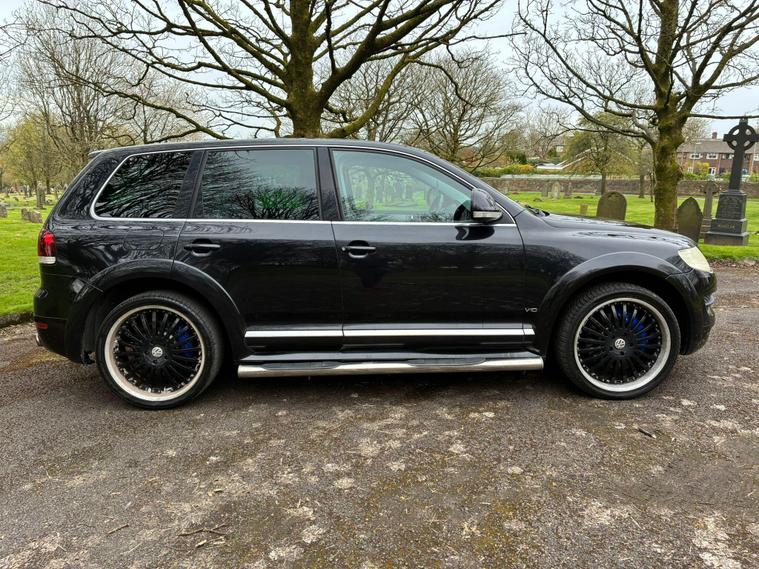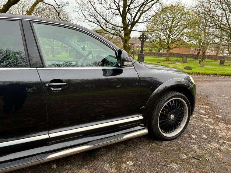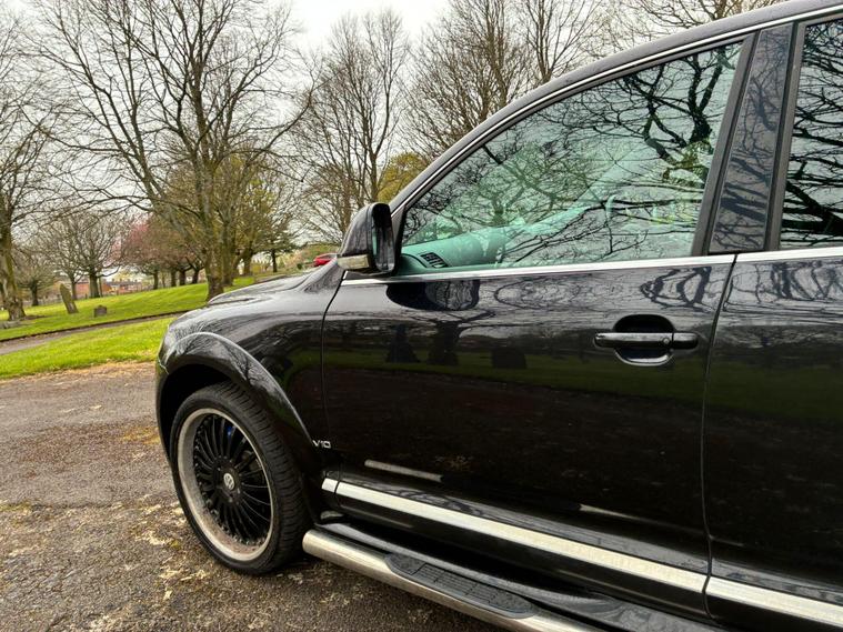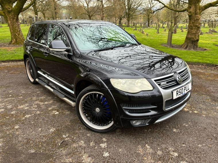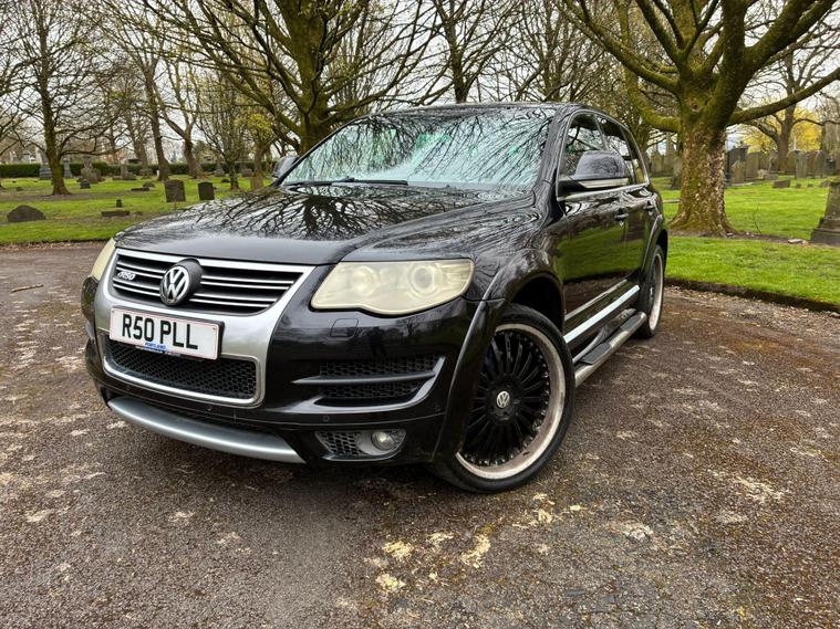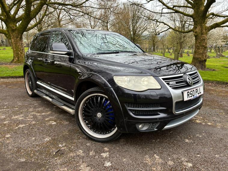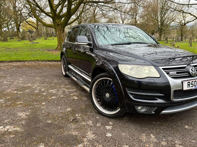 VOLKSWAGEN TOUAREG 5.0 TDI V10 DPF R50 IN A BLACK COLOUR EXTERIOR WITH CHROME EXTERIOR TRIMS WITH BLACK LEATHER INTERIOR WITH CHROME INTERIOR TRIMS... R50 EDITION... COMES WITH 12 MONTH MOT... SERVICE HISTORY... FEATURING ELECTRIC FRONT SEATS WITH MEMORY 3 CONTROLS... 2-WAY BOOT OPENING FEATURE... FRONT AND REAR HEATED SEATS... VOLKSWAGEN INDIVIDUAL AUDIO ROOF DVD PLAYER FOR REAR SEATS ENTERTAINMENT WITH A POP OUT SCREEN... MULTIFUNCTION STEERING WHEEL WITH RADIO AND CRUISTE CONTROL LIMITER... ELECTRIC HANDBRAKE... PUSH BUTTON START... FRONT AND REAR PARKING SENSORS... FOG LIGHTS... AUTO LIGHTS AND WIPERS... CD TOUCHSCREEN RADIO WITH BUILT IN NAVIGATION SYSTEM, BLUETOOTH CONNECTIVITY, CAR SETTINGS... DRIVE SUSPENSION MODES: AUTO/COMFORT/SPORTS... AUTO LEVEL CONTROLS... CLIMATE CONTROL WITH REAR HEATED WINDOWS WITH REAR SEATS CLIMATE CONTROLS... FUEL CAP RELEASE LEVER... BOOT OPENING SWITCH ON DRIVERS DOOR... DASH CENTER STORAGE COMPARTMENT... CENTRAL LOCKING DOOR CONTROLS... ALL ROUND ELECTRIC WINDOWS... ELECTRIC ADJUSTABLE SIDE HEATED AND FOLDING MIRRORS... CUP HOLDERS... ALLOY WHEELS WITH DECENT TREAD ALL ROUND... WARRANTY INCLUDED... ALL PART EXCHANGES ARE WELCOME... OPTIONAL NATIONWIDE DELIVERY EXTRA... BOOK-INS AND VIDEO VIEWINGS ARE AVAILABLE... TEST DRIVES ARE WELCOME... FOR MORE INFORMATION CALL US TODAY ON 01616232309..